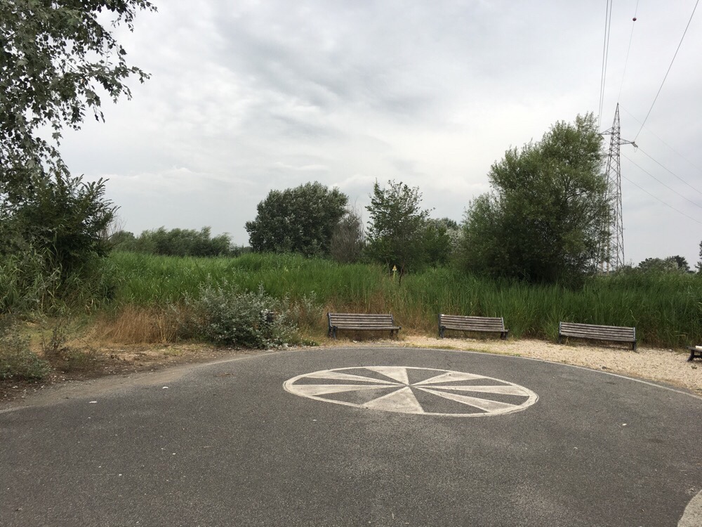 Eventually we got to the end of the cycle path, which is marked by a round symbol thing and some benches…