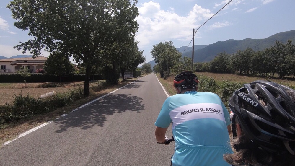 After loading up the tandem this morning we cycled to a nearby café for our usual cappuccini and cornetti. It isn’t the done thing in Italy to drink cappuccino after about ten in the morning, so we usually just squeak in before the deadline. We were quizzed at length by a friendly Italian gentleman about our activities, plans and general outlook on life. So much at length, in fact, that we eventually had to make our excuses and leave, otherwise we’d never have completed all of our kilometres today!