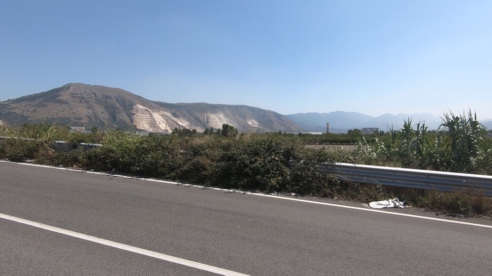 It really drew the eye, which was just as well, because the immediate landscape was not great. Everything was covered in a fine layer of dust, presumably from the quarries – cars, vegetation, probably us after cycling through it. And there was rubbish everywhere along the side of the road, at one point a lay-by of around a hundred metres full of sofas, mattresses, bin-bags and an awful lot of abandoned toilets, presumably after bathroom remodelling. Not Italy’s finest vista.