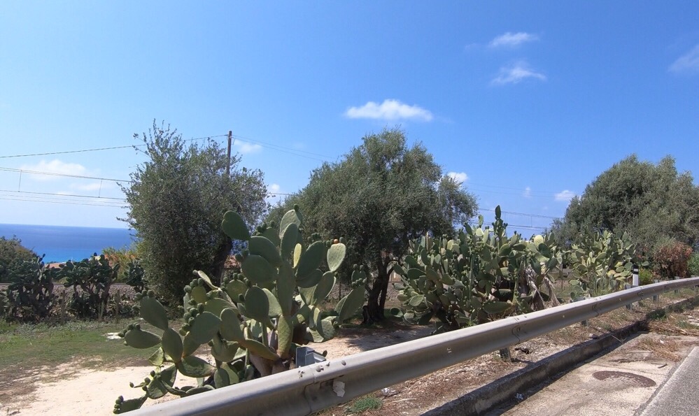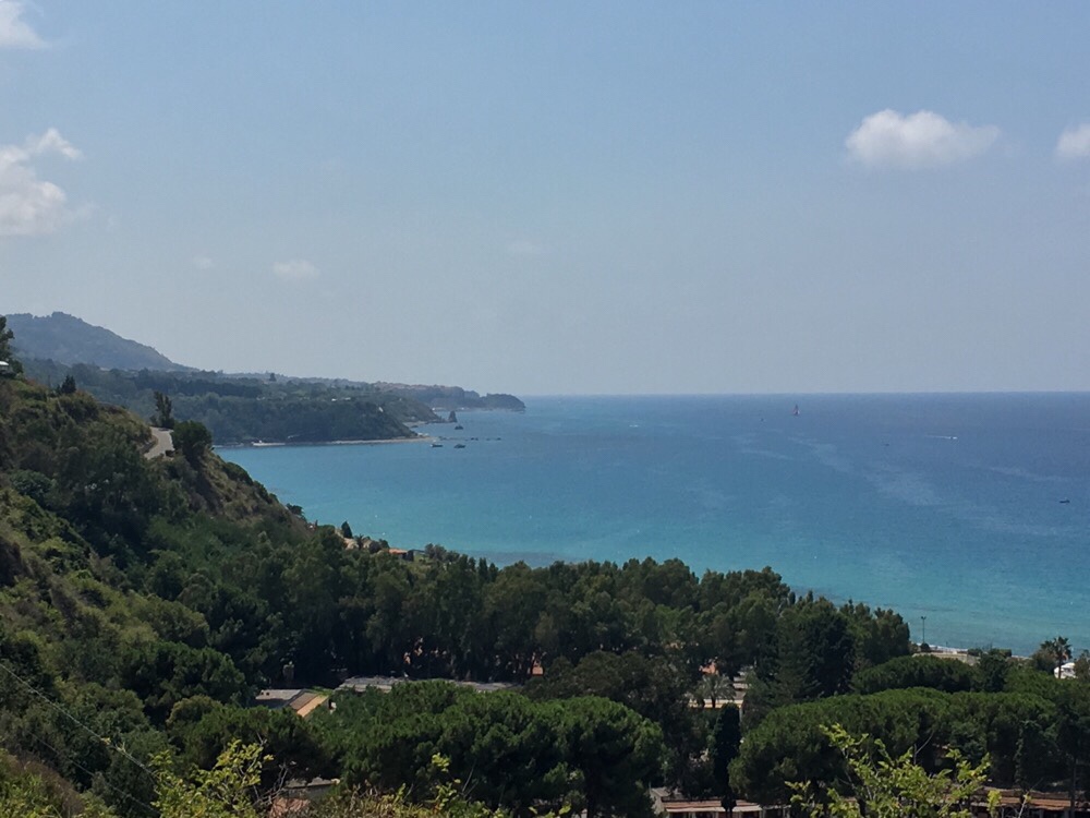 As we headed down out of Pizzò we could see Tropea in the distance, a rather hazy headland, the third of three. In fact we’d seen it last night from the restaurant in Falerna Marina, when it looked even further away and even more hazy. The afternoon was much more strenuous than our fast, flat morning, up and down we rode, and each time we crested a rise, the headland of Tropea was just that little bit closer.