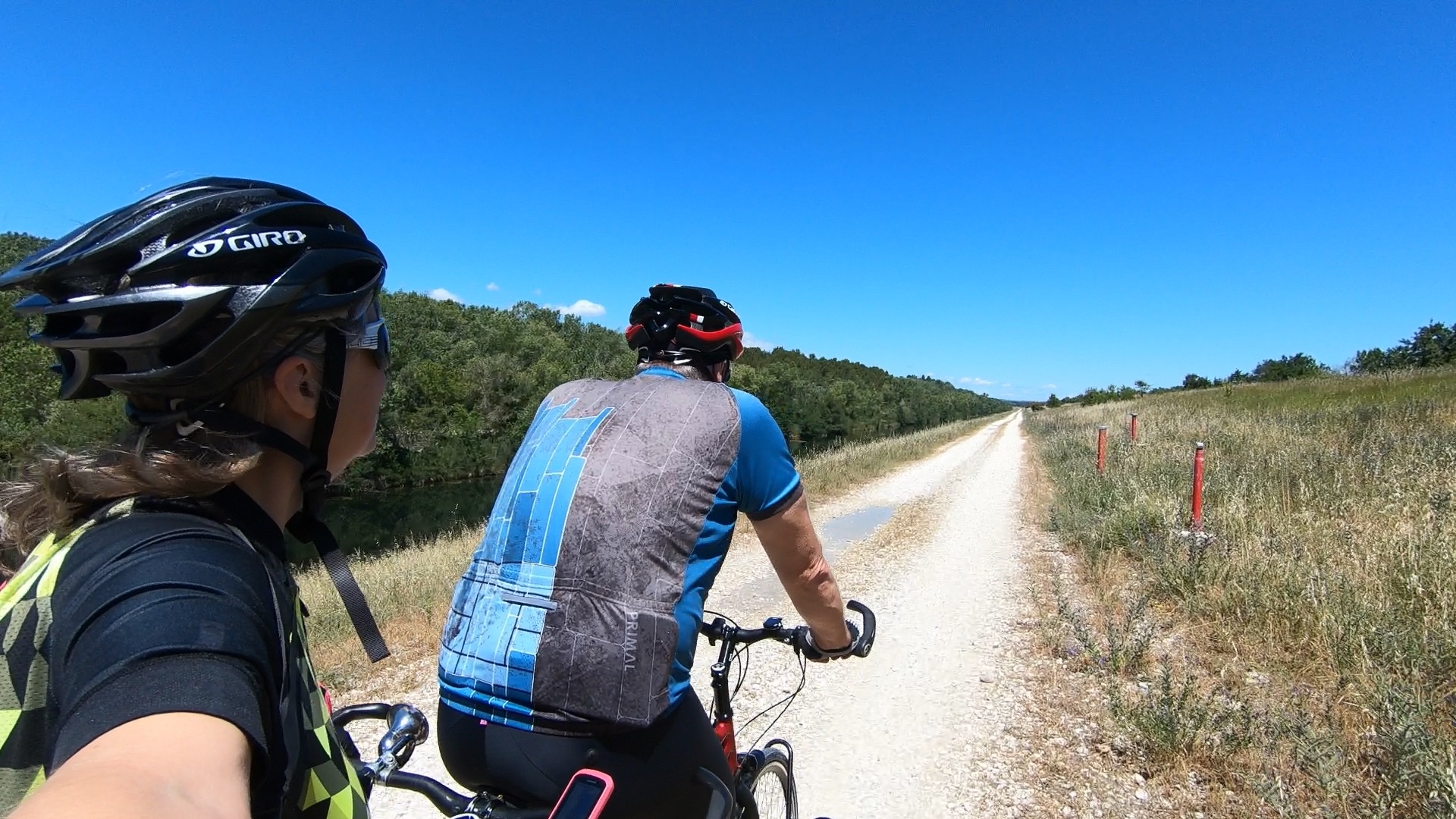After a while we turned onto a cycle path next to the levée, which was surfaced in gravel of varying grades. Readers familiar with our previous journeys will recall that the Stoker hates this kind of surface with a passion! However, I can report that she bore the ensuing six kilometres of gravel path stoically, if not entirely enthusiastically.