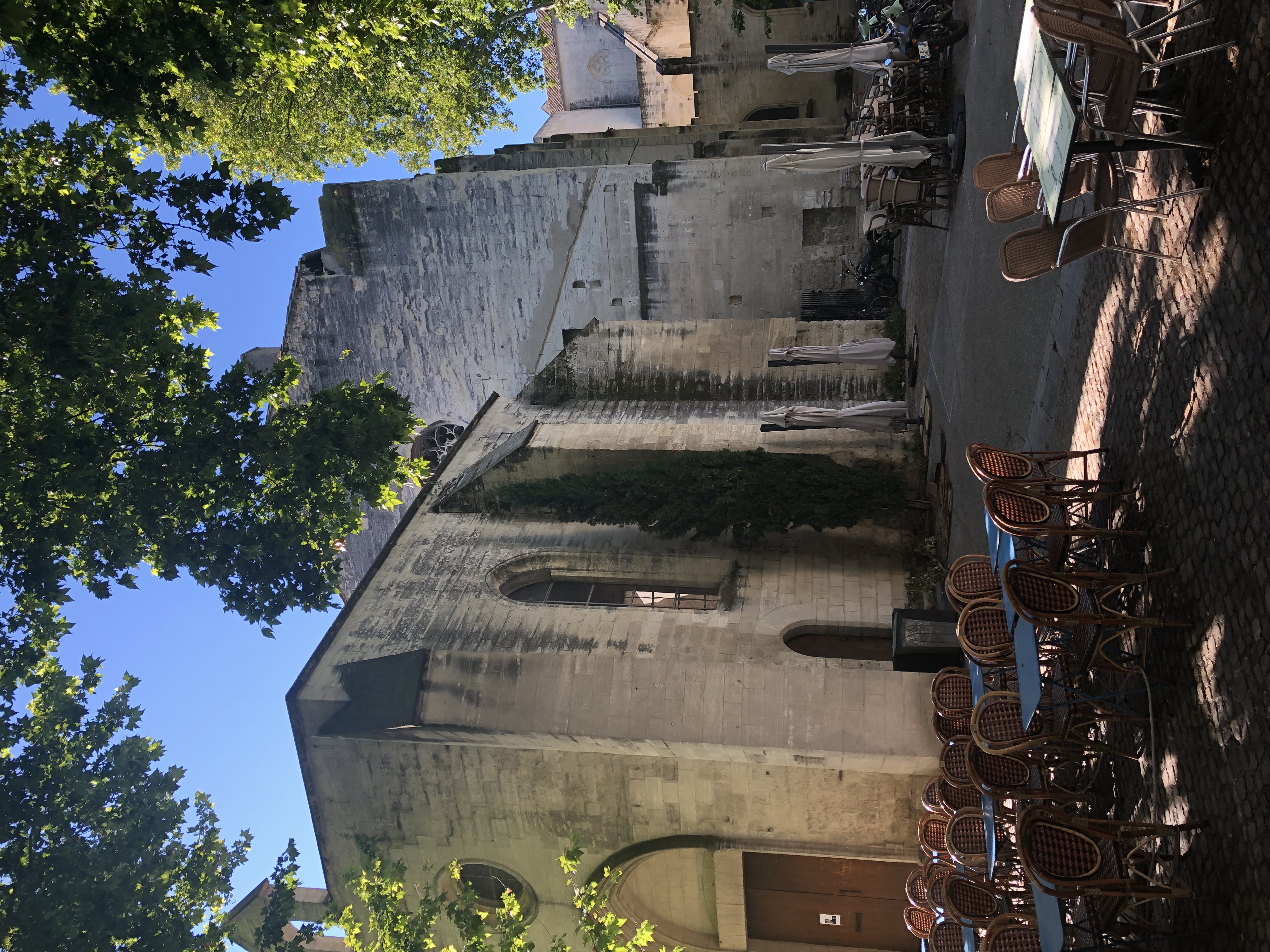 Our hotel was on a narrow street adjacent to the sort of square where one can imagine sipping wine and enjoying cuisine at an outside table. The weather put paid to this, in fact it continued to rain heavily for the rest of the day, so we abandoned our plans for a pleasant stroll around the old city and a visit to the Pont d’Avignon.