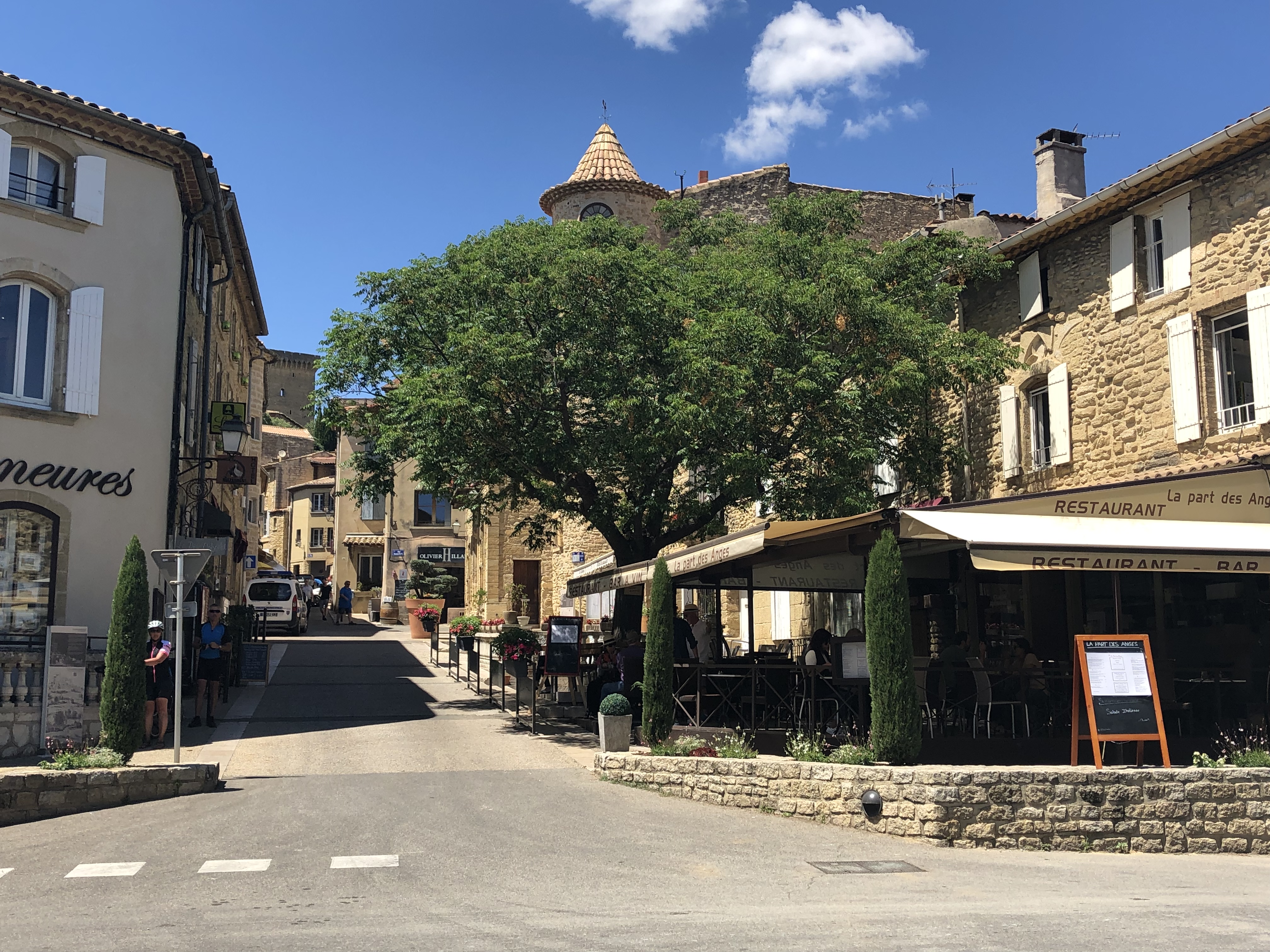 By now it was most definitely lunchtime. In the centre-ville we dismounted and had a very good lunch, with some white Châteauneuf-du-Pape to help it down (we’re saving the red for this evening). While not wishing to offend any Geordie readers I have to say that the translation of its name (to “Newcastle-of-the-Pope”) does lessen the glamour somewhat.