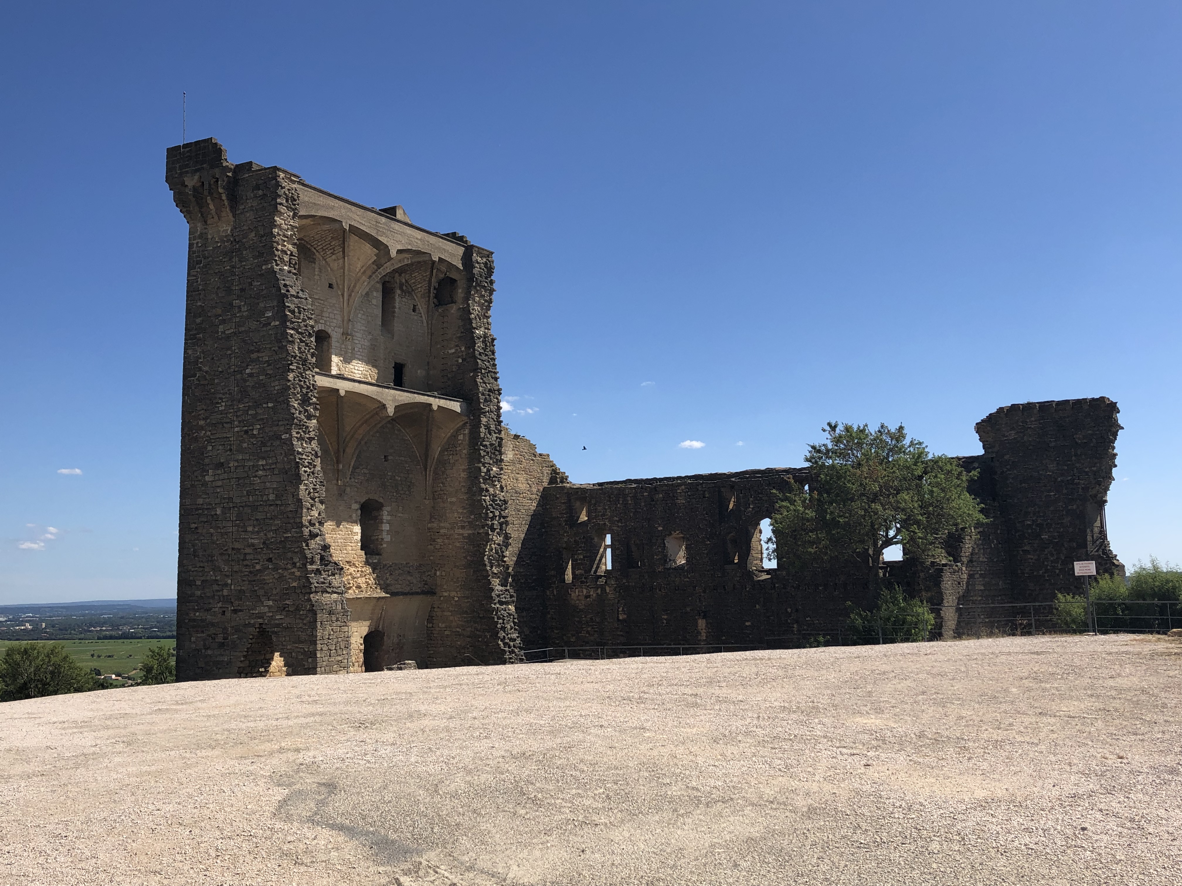 It occupies a spectacular setting, with views of Mont Ventoux to the east, and of the Rhône valley to the south and west.