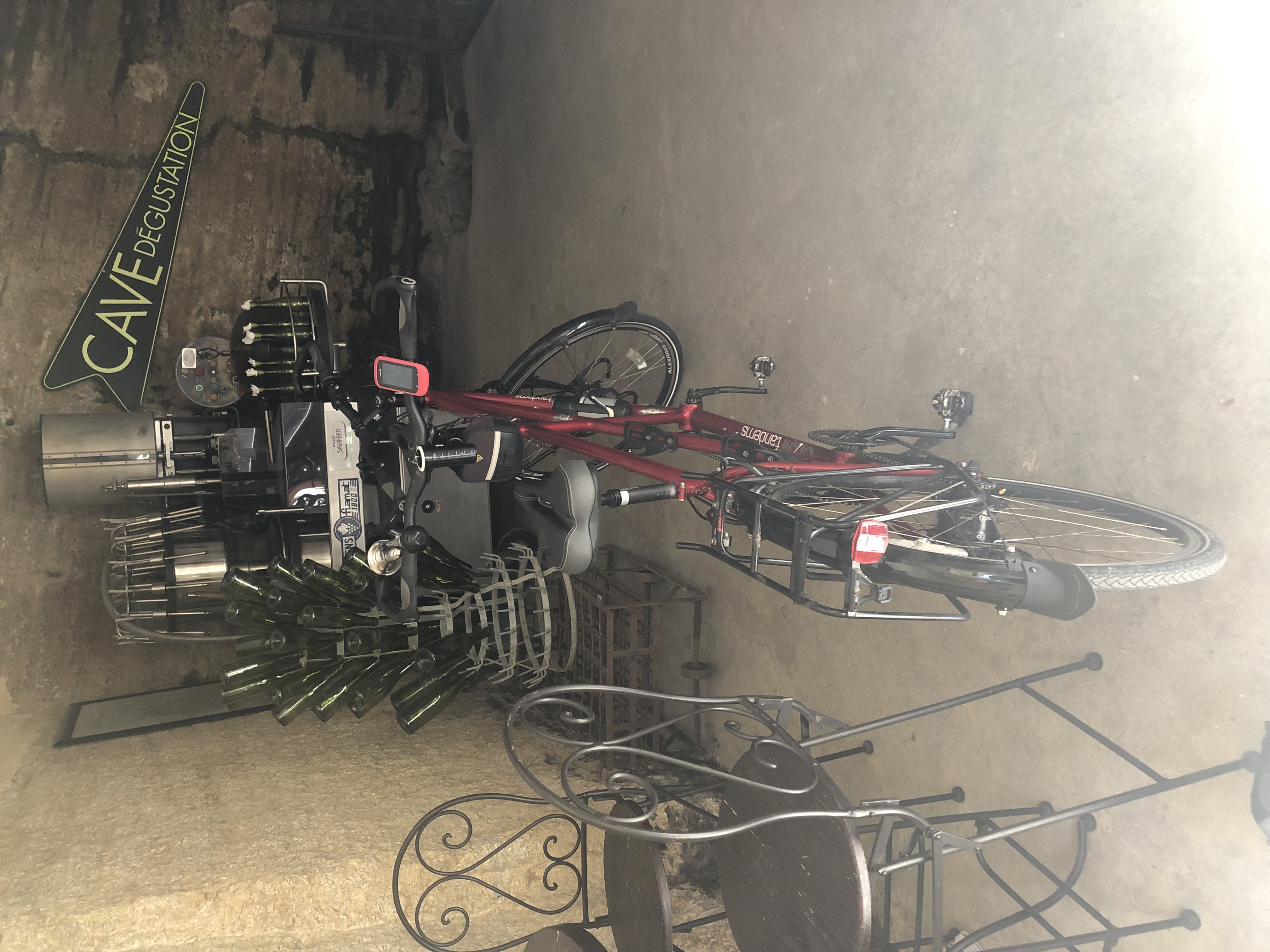 Our host had arranged for her ‘bon père’ (father-in-law, I think?) to come in the morning to release the tandem from the tasting cave where it had spent the night.
