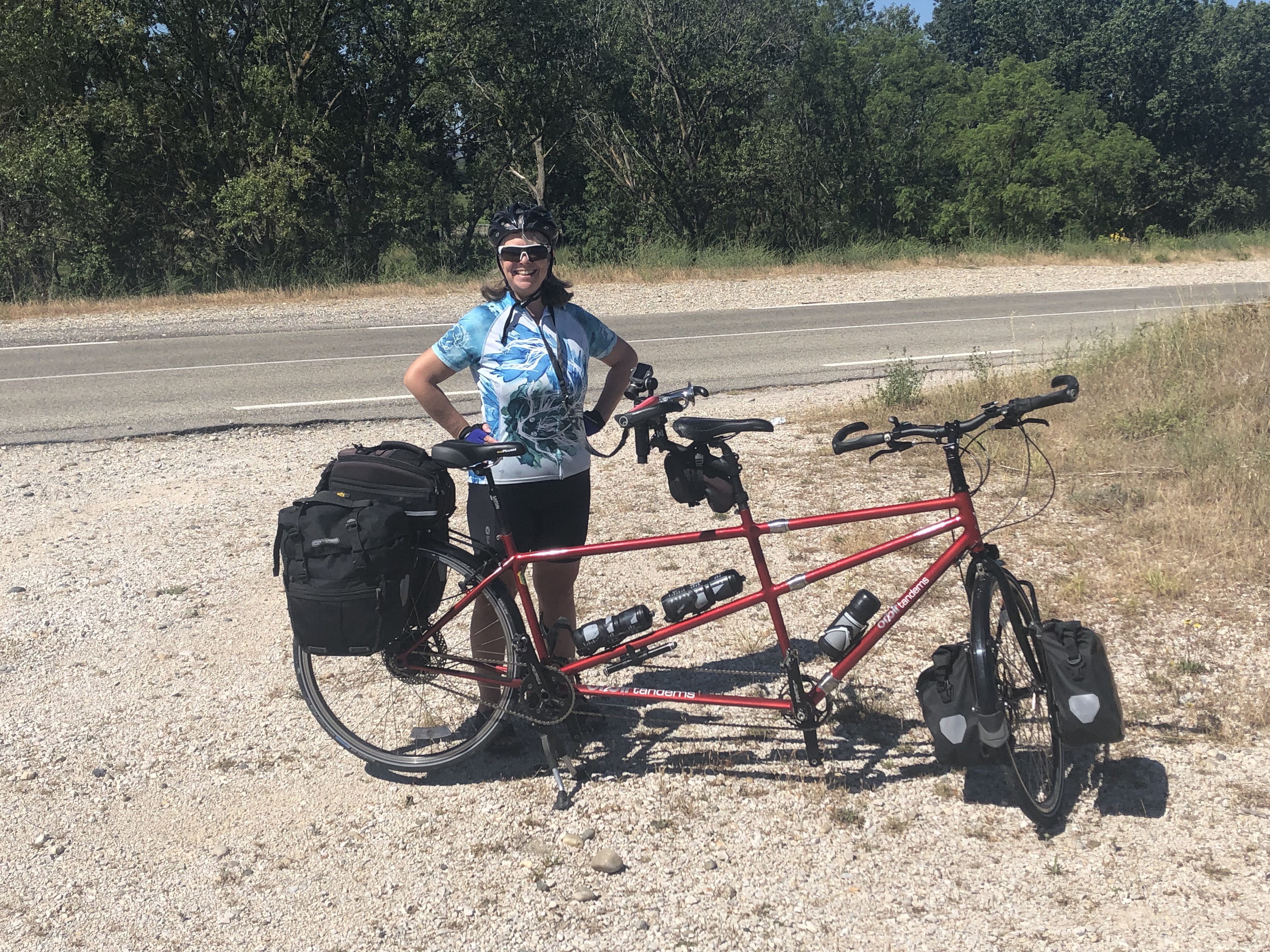 He was a keen cyclist and a fellow tandemist, the second we’ve encountered on this trip, after our hosts in Le Bourg d’Oisans. He gave us some good tips for our route today, and for cycling through the Ardèche Gorge tomorrow, and saw us on our way with a cheery ‘au revoir’. The people of the Vaucluse have been wonderfully warm and friendly.