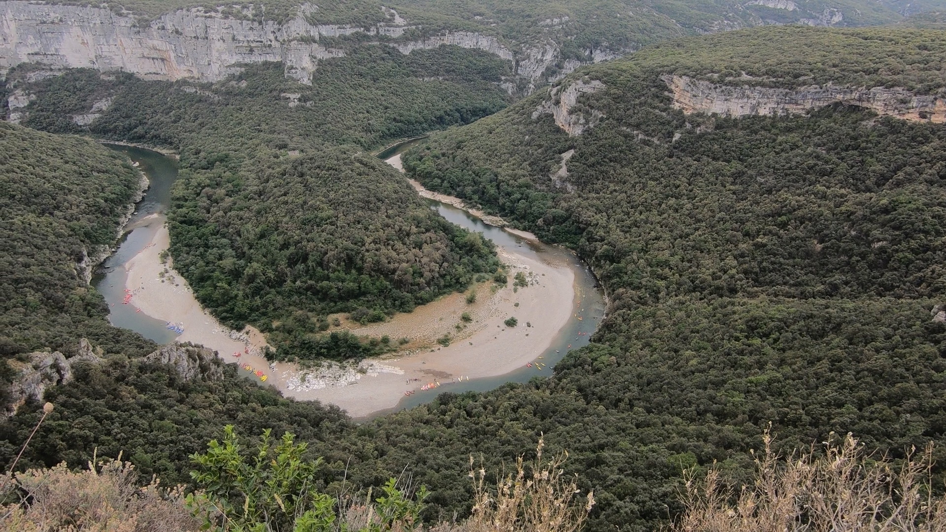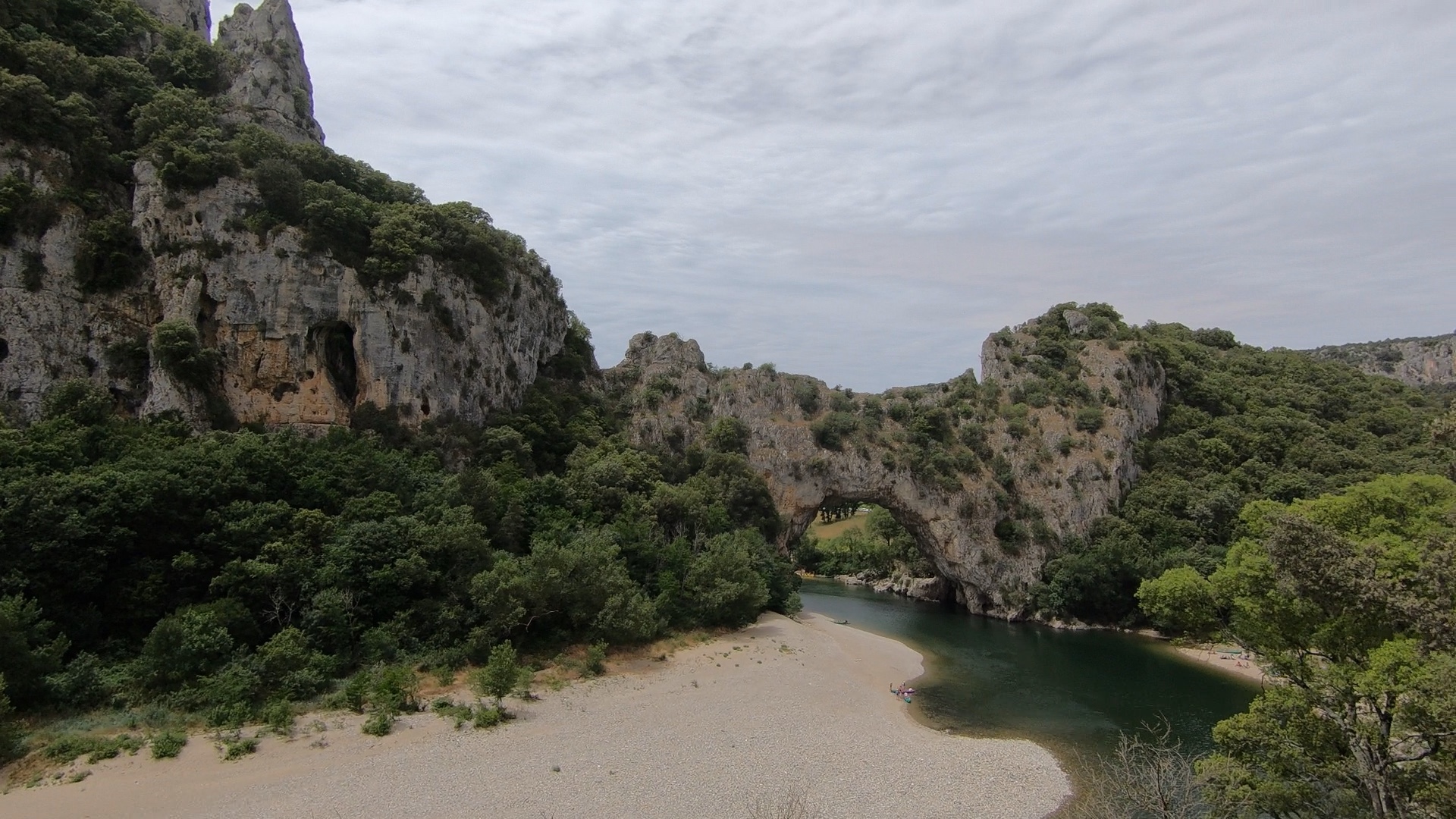 Towards the end of the gorge we reached the highest point, and were subsequently able to enjoy a long steady descent towards the Pont d’Arc. This famous landmark guards the western end of the gorge, occupying a dramatic setting.