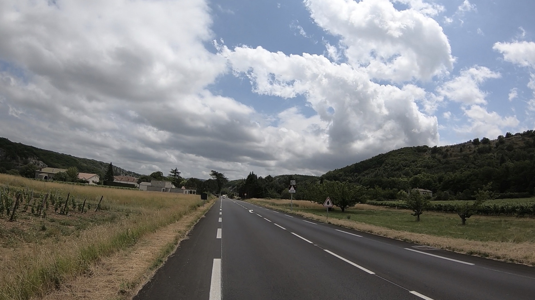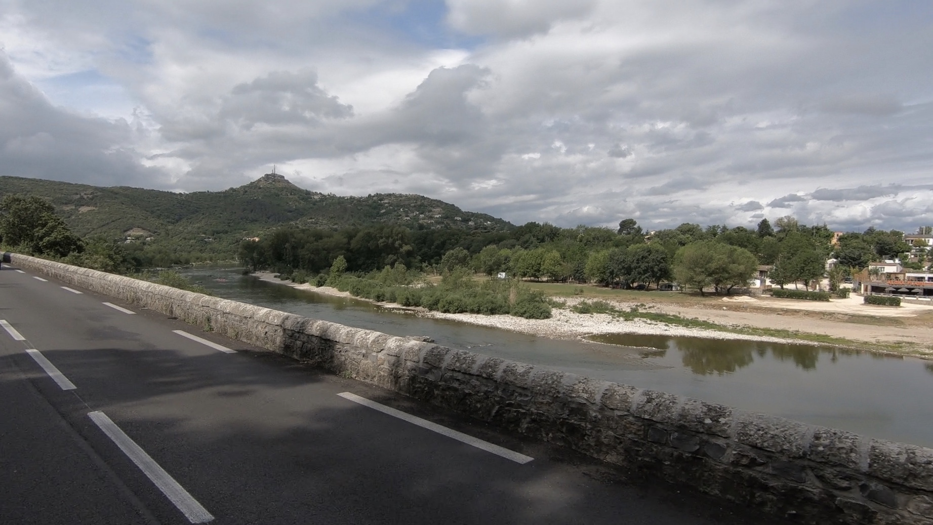 We slept well, conquered the coffee machine, ate the croissants we’d bought yesterday at Lidl, packed the panniers and left along the Ardèche river in the sunshine.