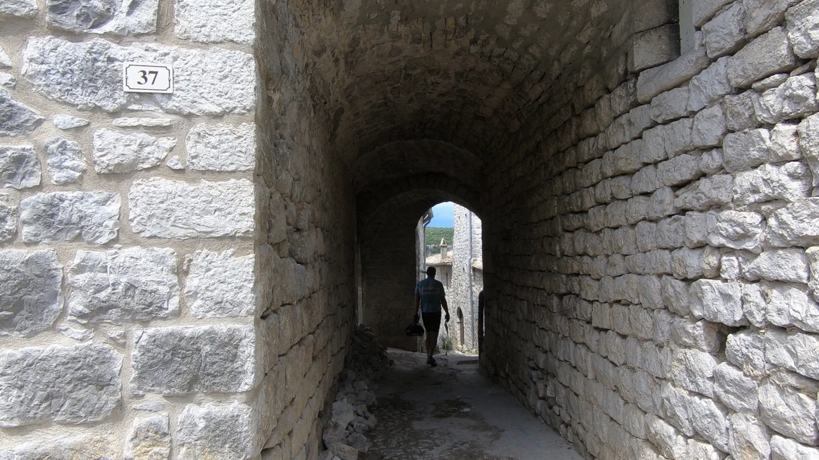 At the turning for Balazuc, we took the road up to our second pretty medieval village of the day. “Balazuc, Balazuc, can you do the fandango?”, I said. “Don’t say any more!”, said the Captain, at which point I remembered that the next line is “Thunderbolts and lightning, very very frightening”… Eek!
