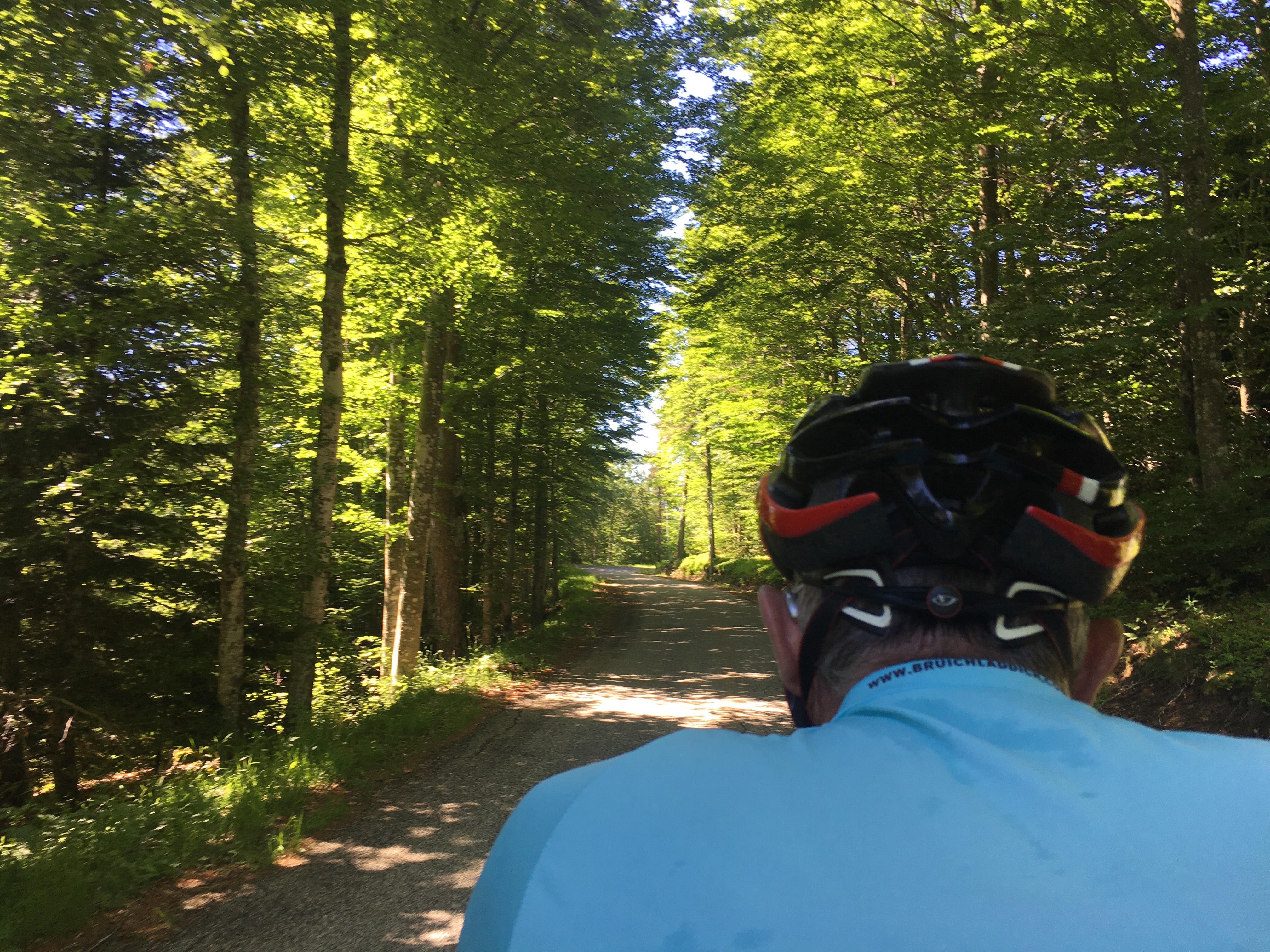 … and further on down the valley. There was the odd uphill section, but mostly we were gently gliding through forested landscapes on minor roads, or into and out of small villages. We pretty much had the road to ourselves, it was fantastically quiet.