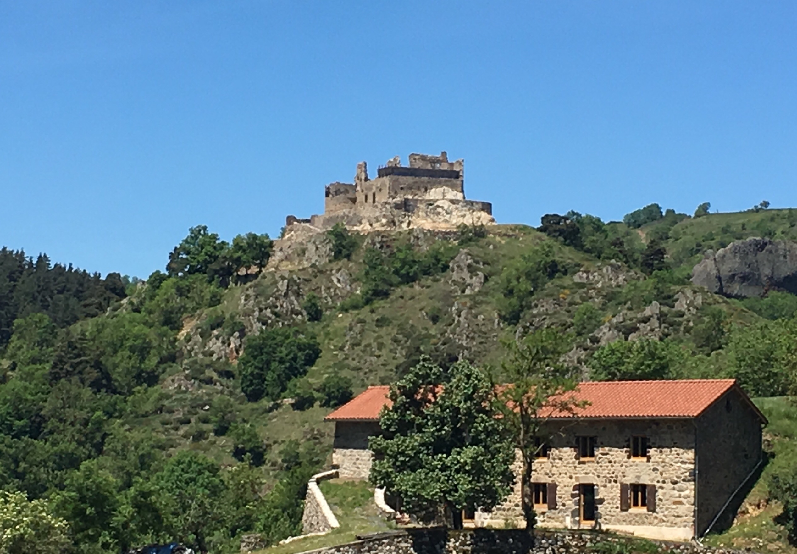 We flashed past Goudet’s castle ruins high on a volcanic outcrop on the descent into the village…