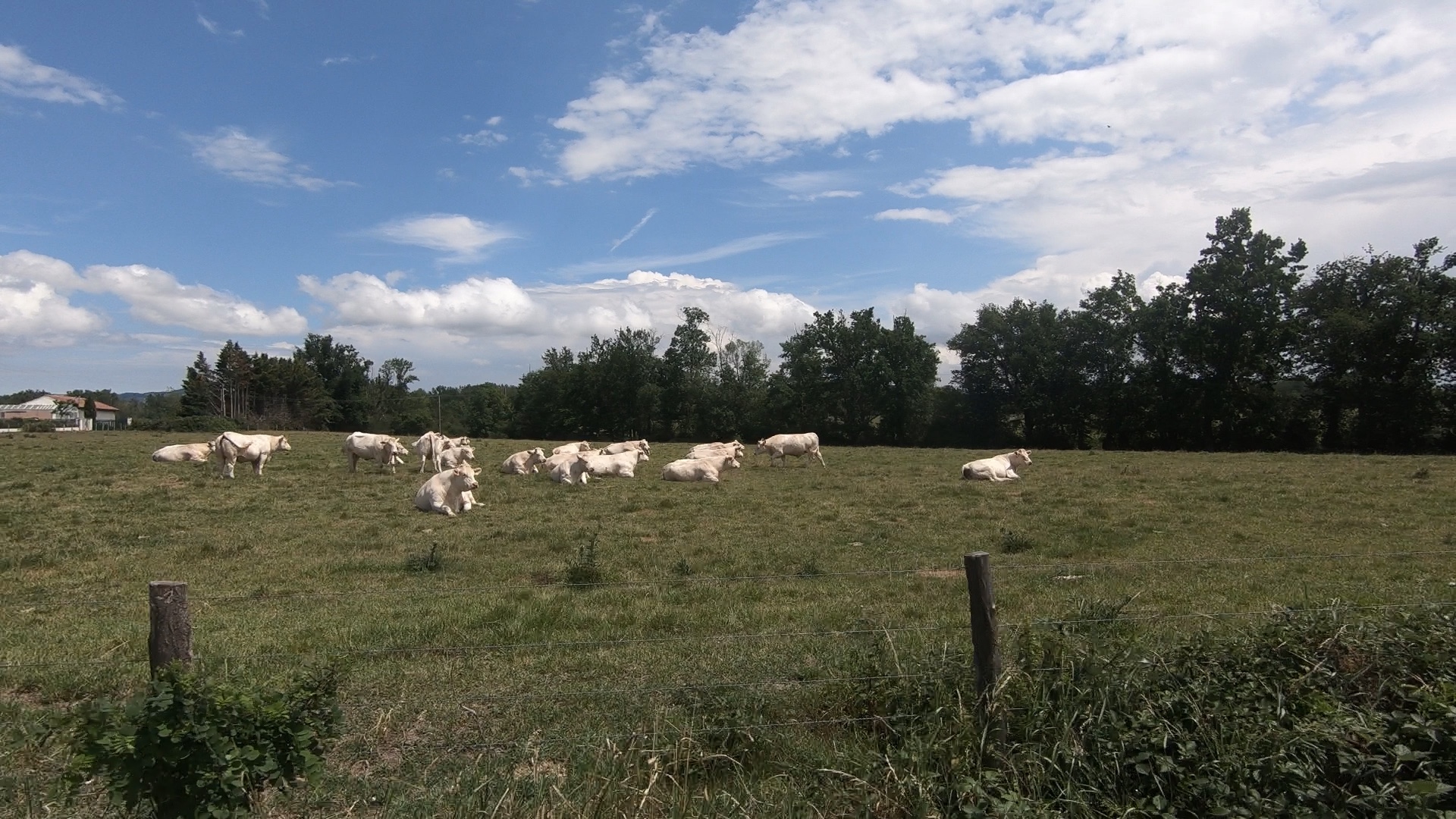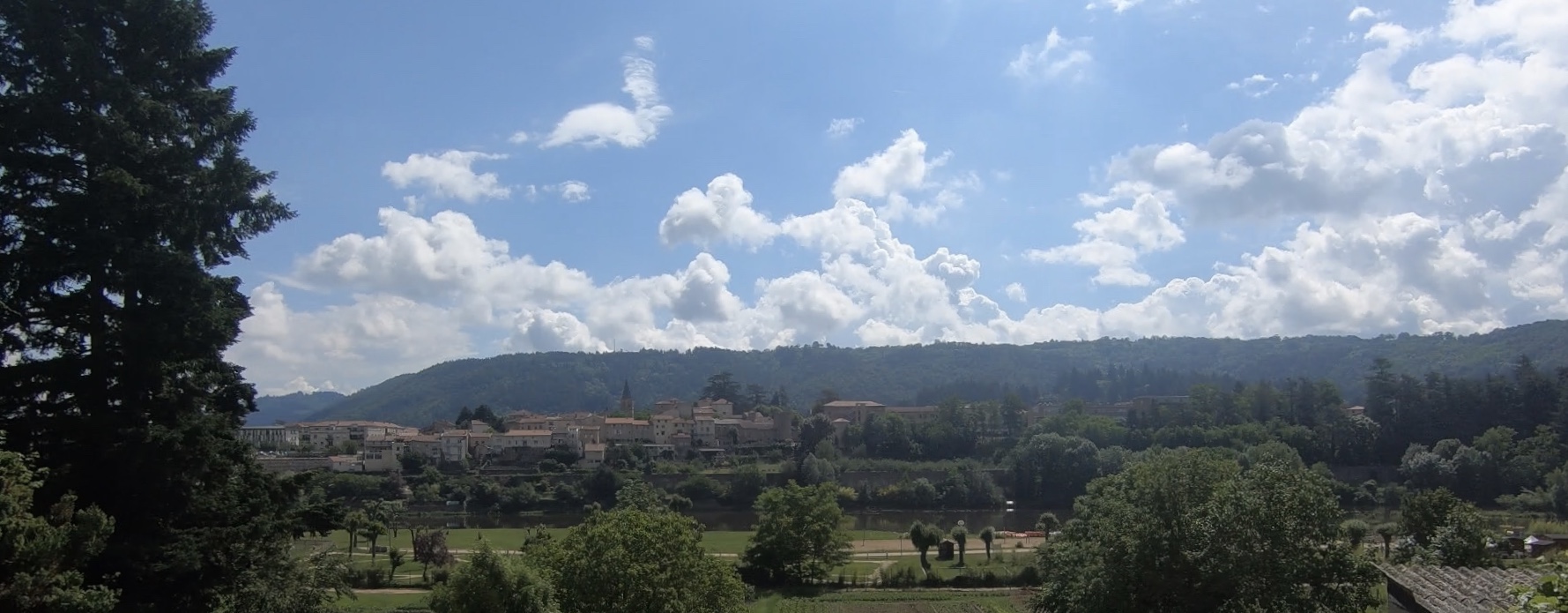 The climb up to Chambles was to be the last significant climb of this whole trip, we were told by the guide book we’ve been using to plot our routes. It started gently, and took us up and around a big loop in the river, in and out of forested sections in dappled light. It’s a signal that we’re definitely getting fitter that we didn’t stop at all during 8km of climbing, arriving in Chambles to find a sweet little village, with a tower and presbytery, the views from which were spectacular in both directions.