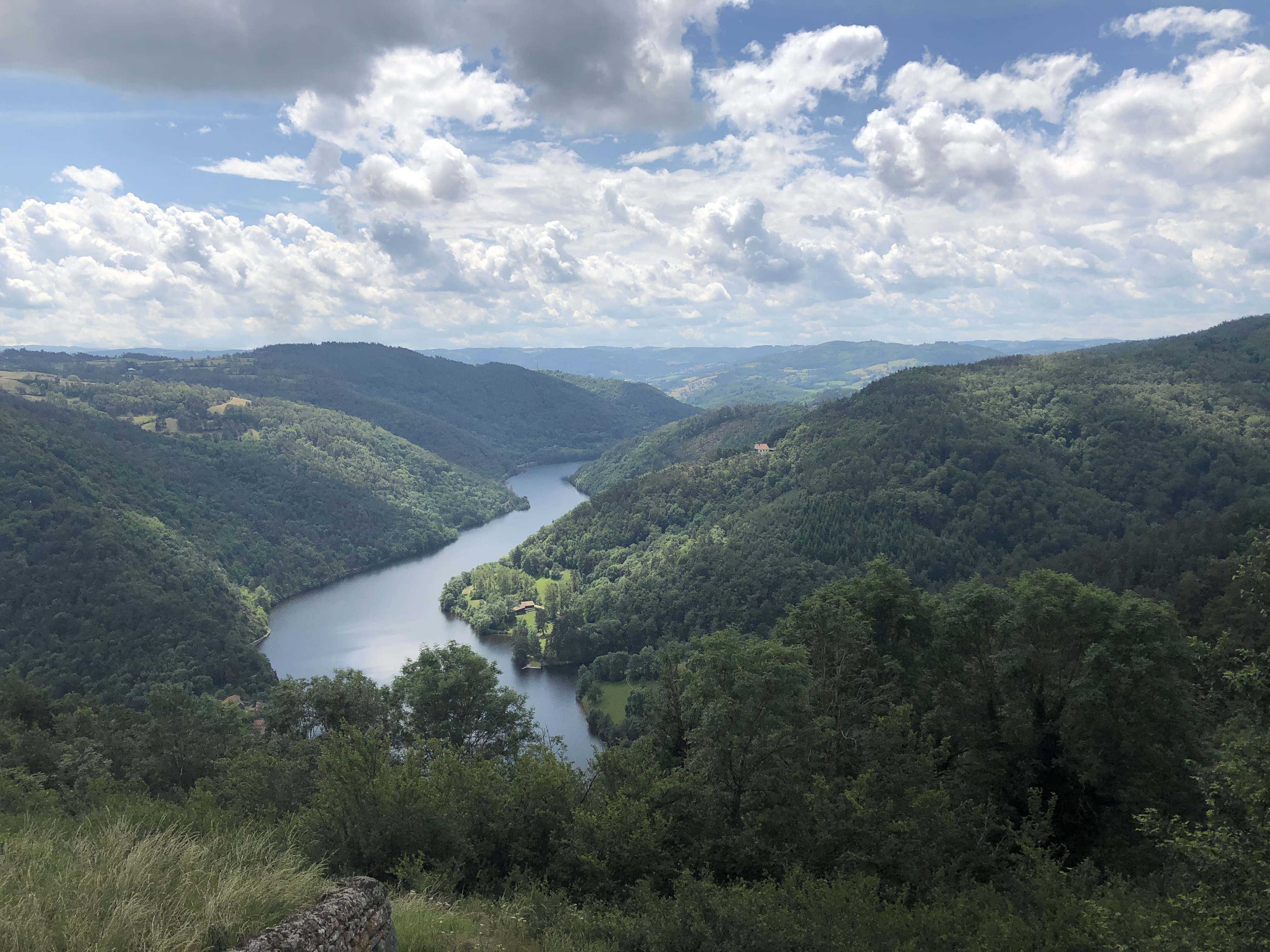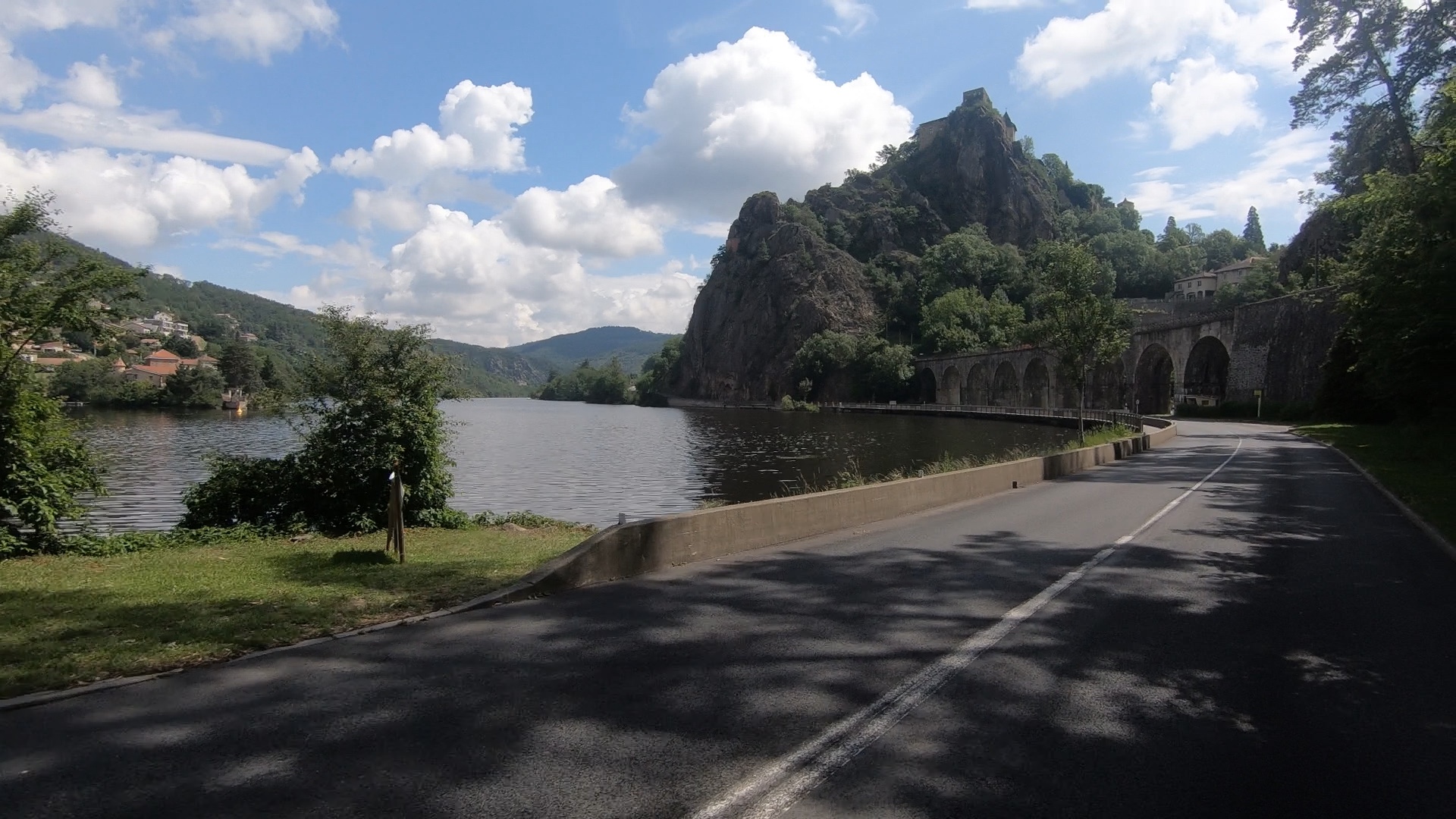 We left Bas-en-Basset downhill, a lovely long glide in the sunshine. Storm, what storm?! There was a small climb as we rejoined the Route des Gorges de la Loire proper, and lots of lovely gorge-ous scenery (see what I did there?).
