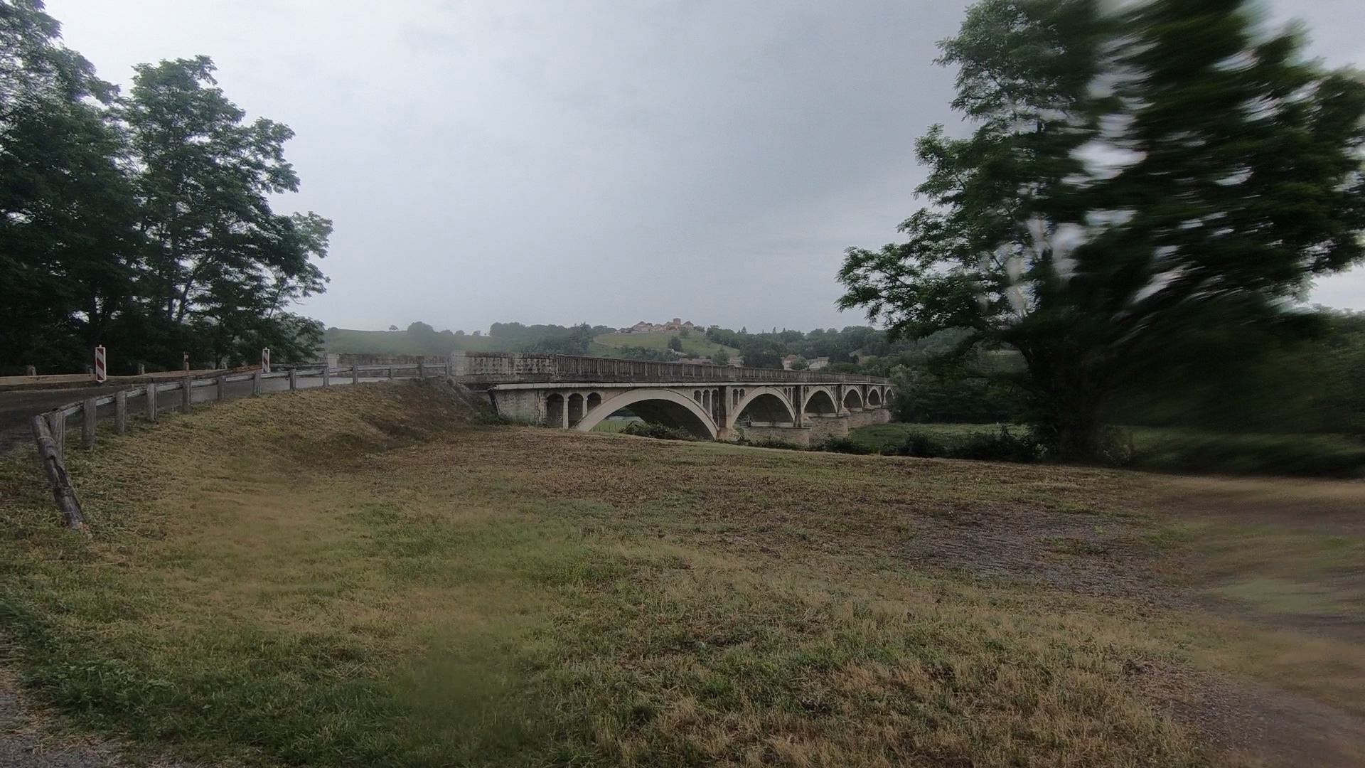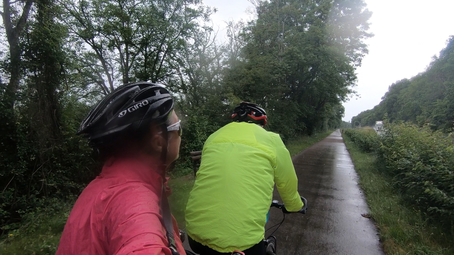 The exit from Roanne was on a long, straight, traffic-heavy road until Briennon, when we moved onto a lovely quiet road. We were once again fully clad in rain-jackets now, the rain steady rather than heavy.