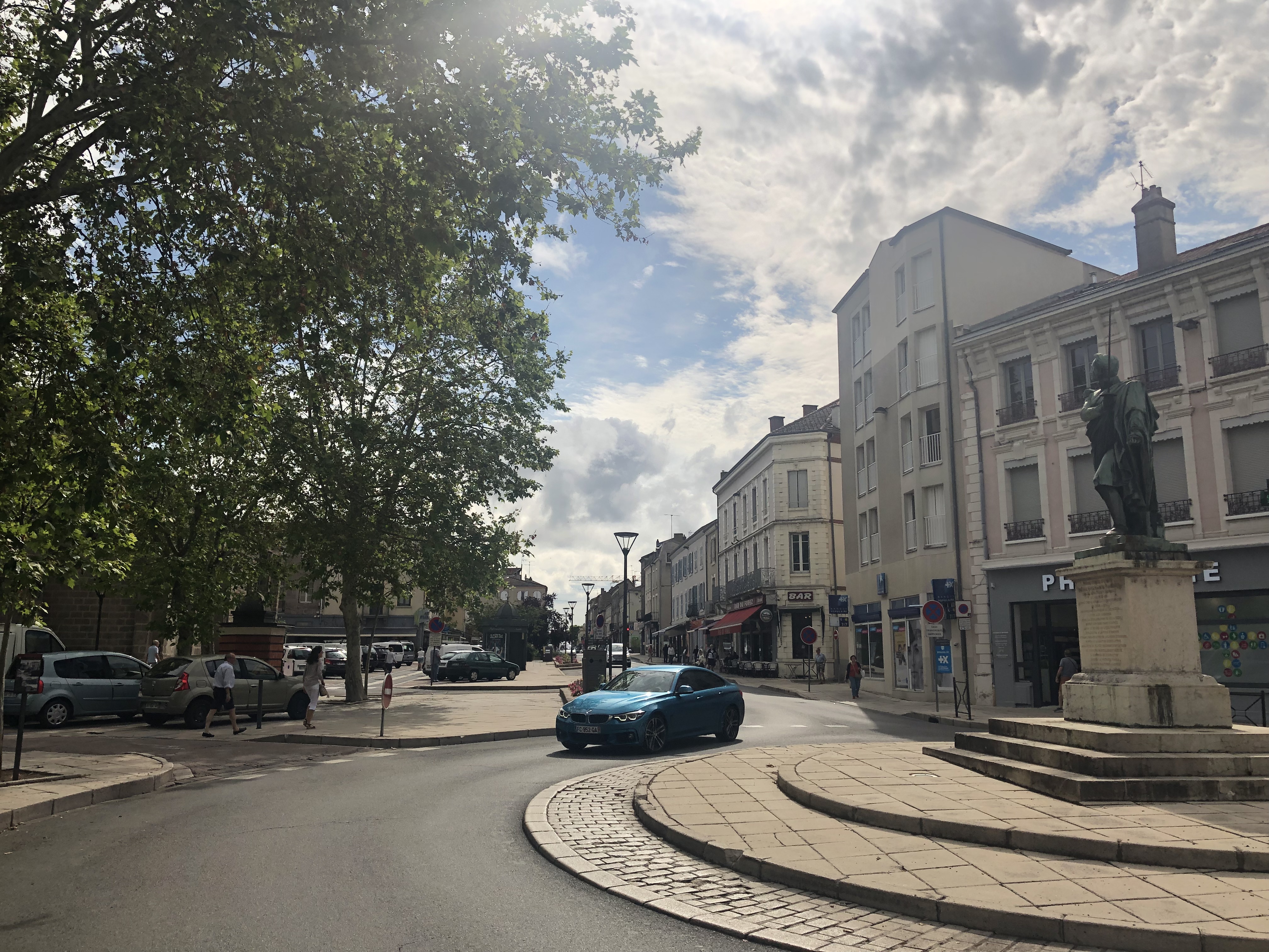The forecast today was for better weather. Well, it started out well enough. We took a quick look at the main square in Feurs before departure.