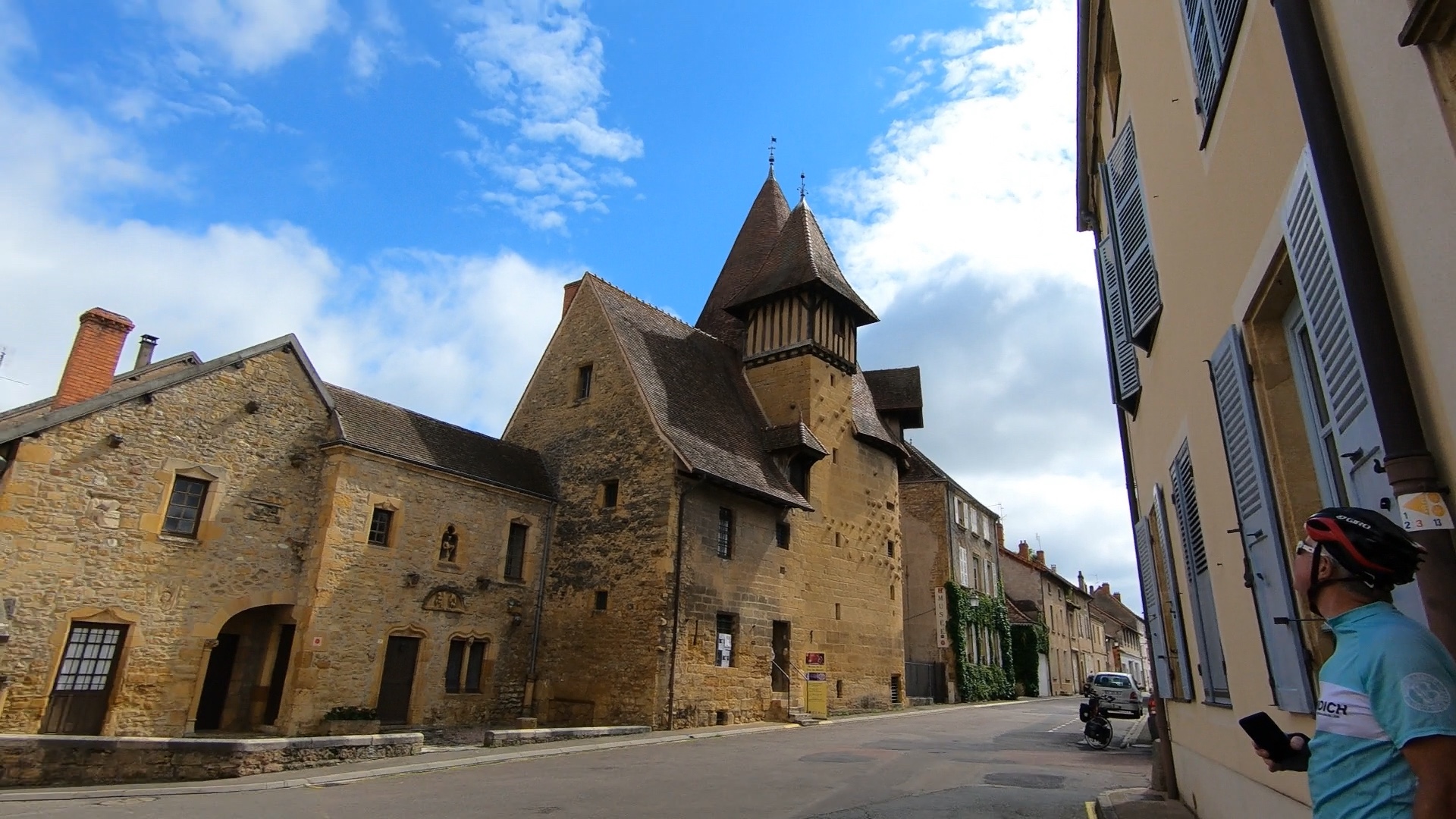 The voie verte we’d ridden in on yesterday continued in exactly the direction we wanted to go today, but before we rode out to find it we took a quick turn around Marcigny itself, mainly to have a peek at its famous Tour du Moulin. Very picturesque.