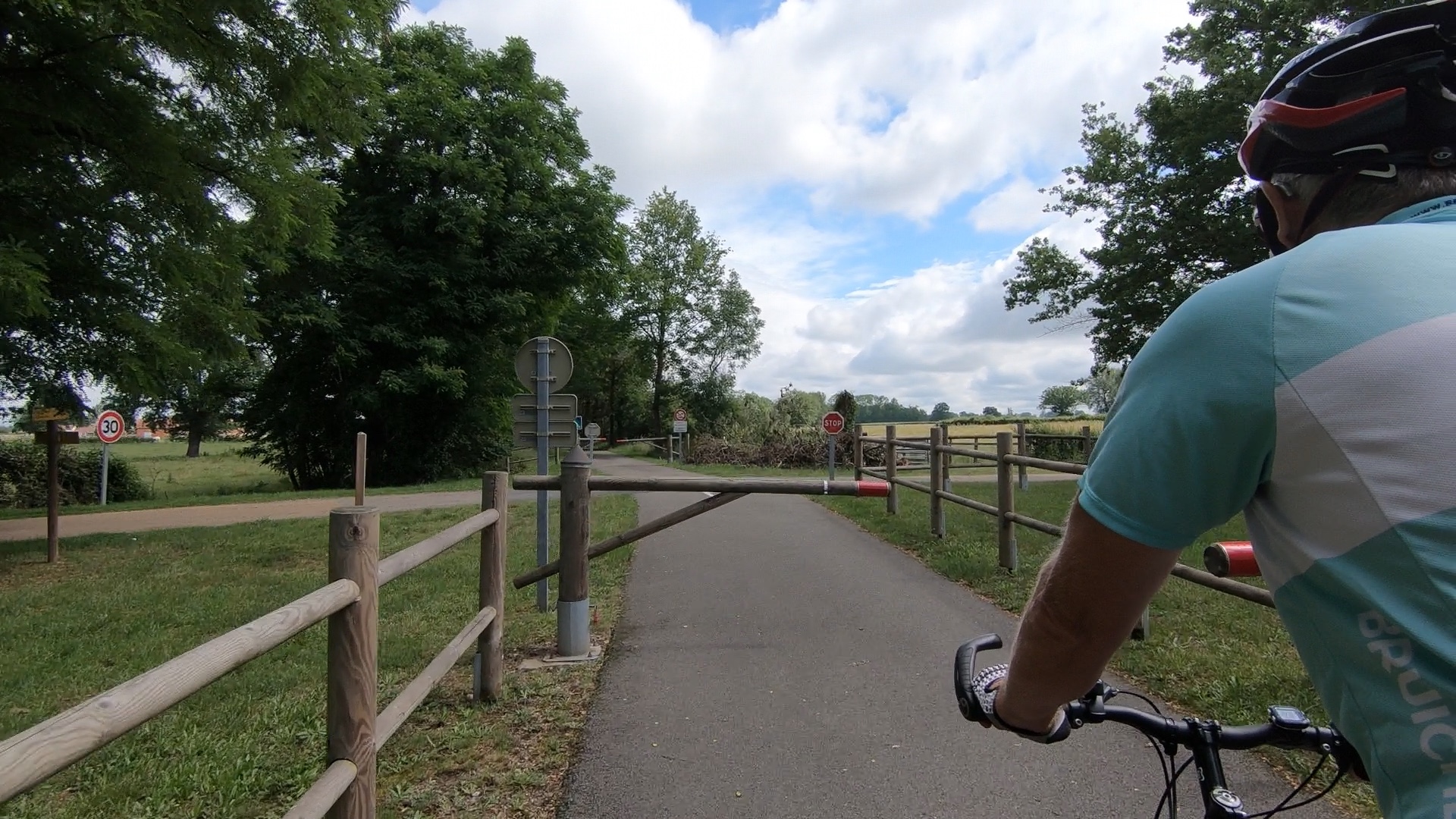 Once onto the wooded cycle path we gradually accelerated to cruising speed, slowed down only by occasional junctions like these, which were a little tricky to negotiate: