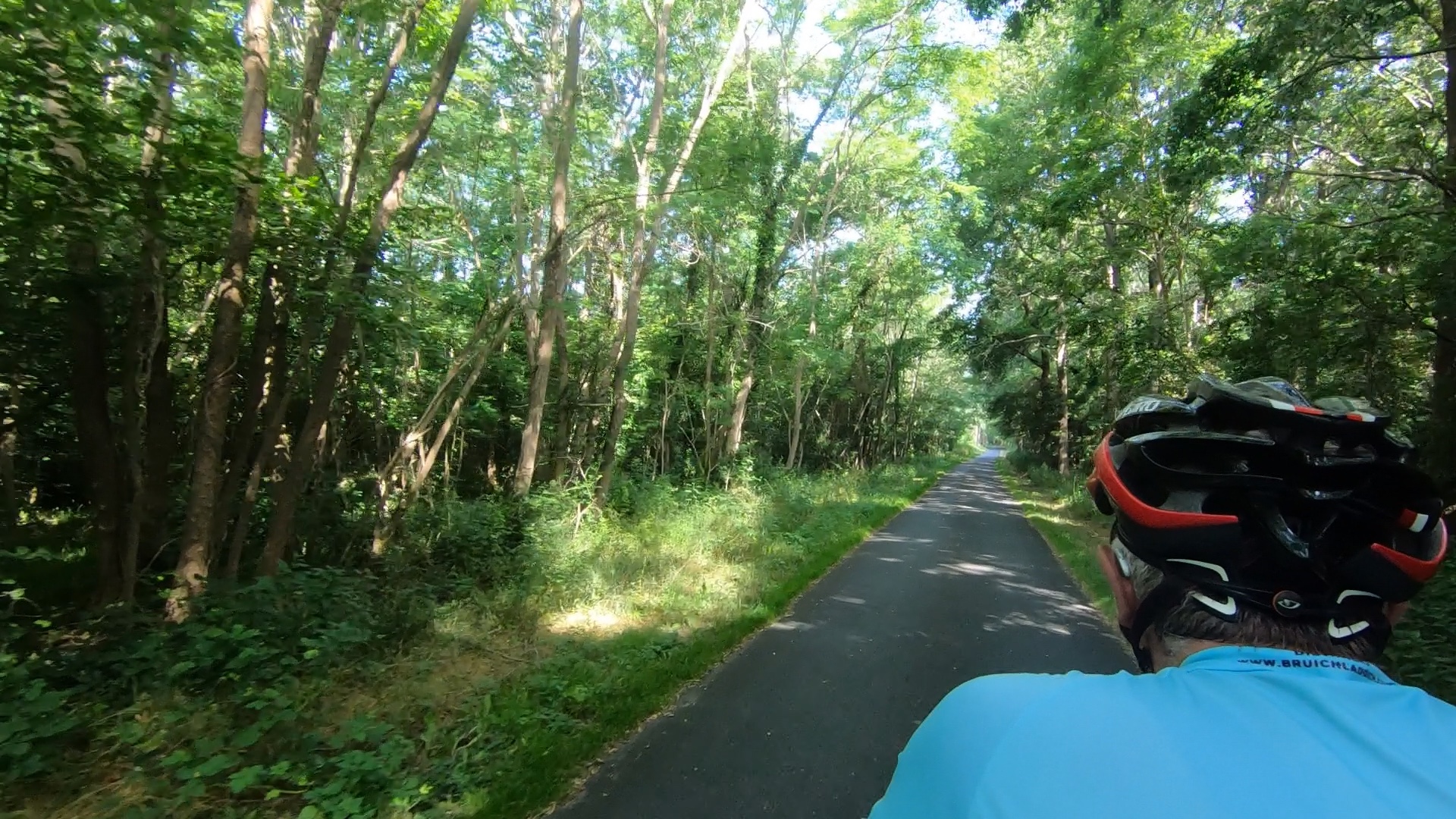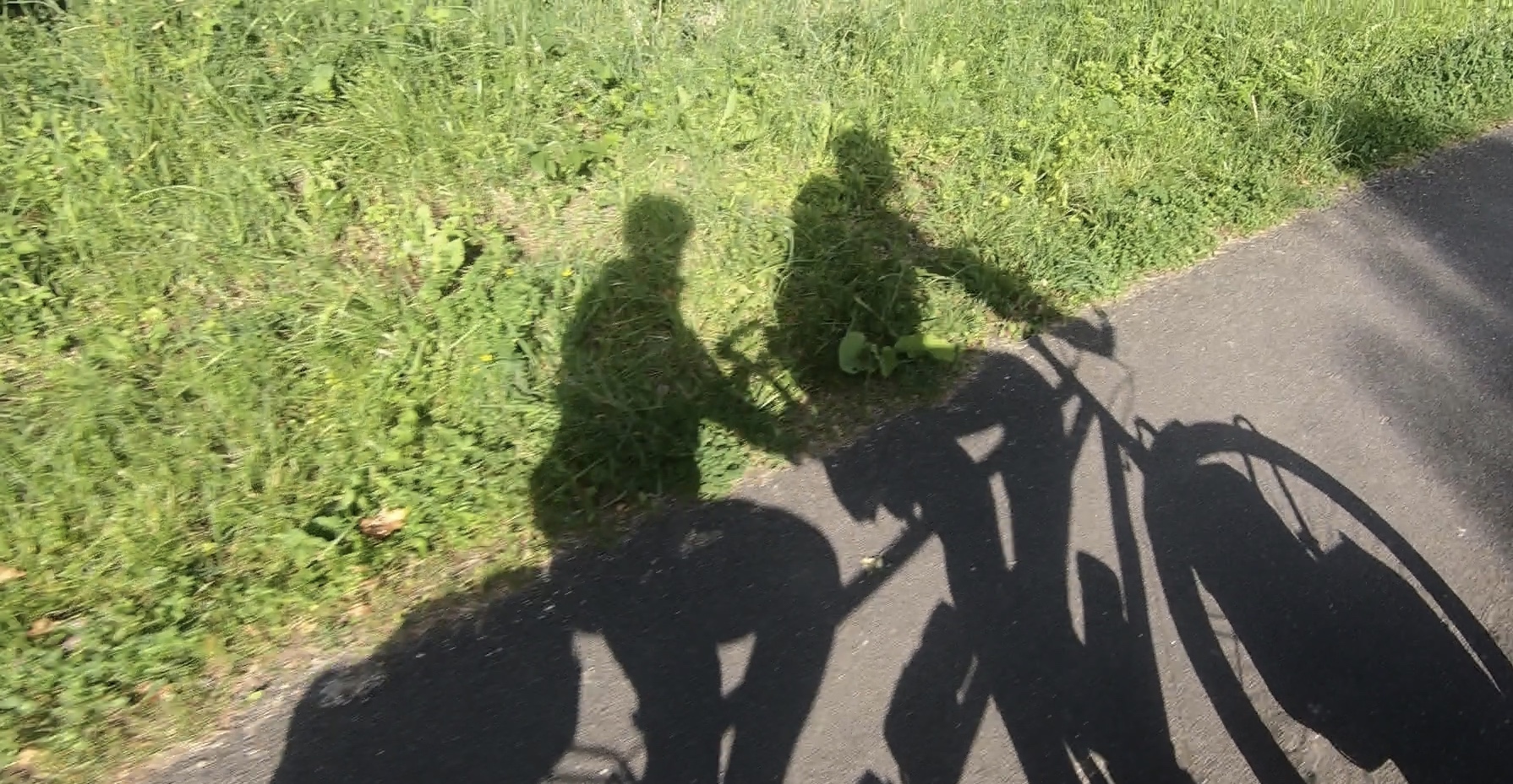 The route has been brilliant so far, very well signed and almost always on dedicated cycle paths or tiny roads. For the first hour or so we saw no other cyclists on the route at all, perhaps because we’d left so early. The sun was very bright, and our shadow bowled along beside us looking very sharp.