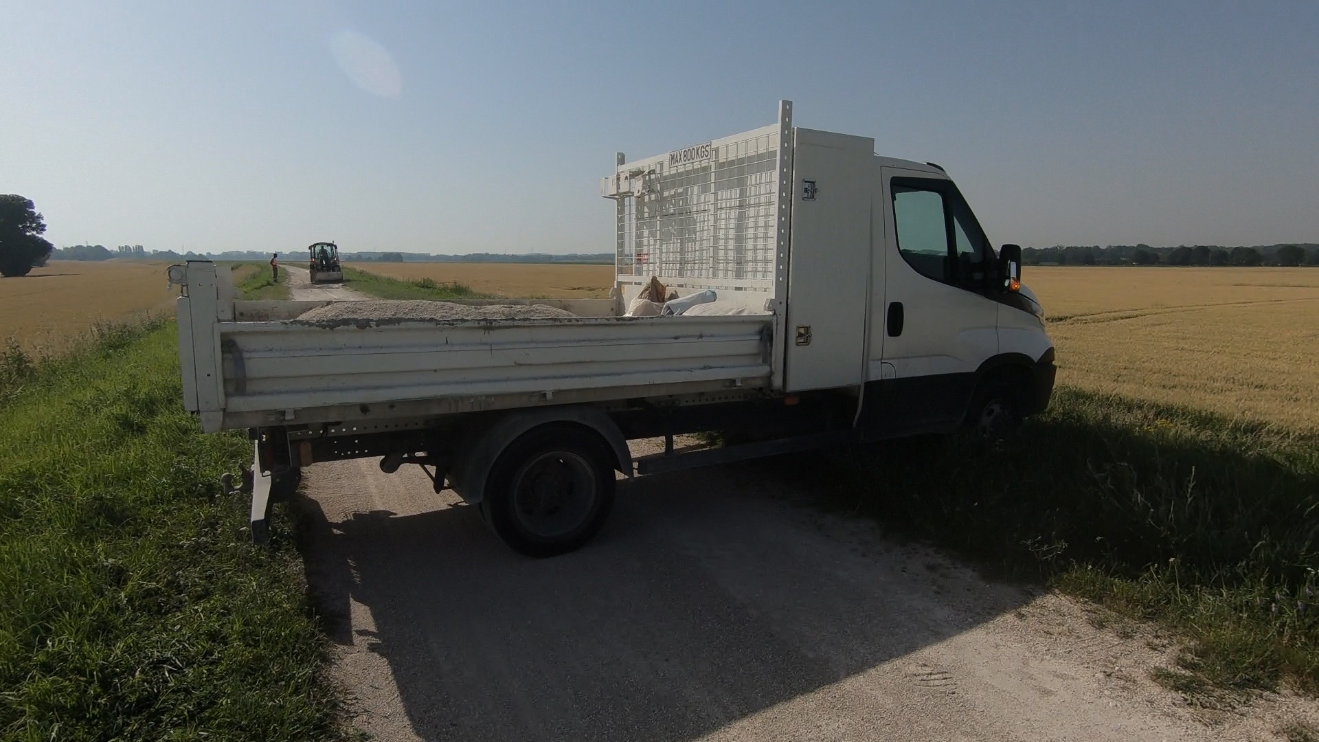 … after which it was back on the levée, and a sign saying ‘Travaux’, which seemed unlikely. Roadworks there actually were, though, and a cheery greeting from the workers for all the cyclists – we were seeing more of them now.