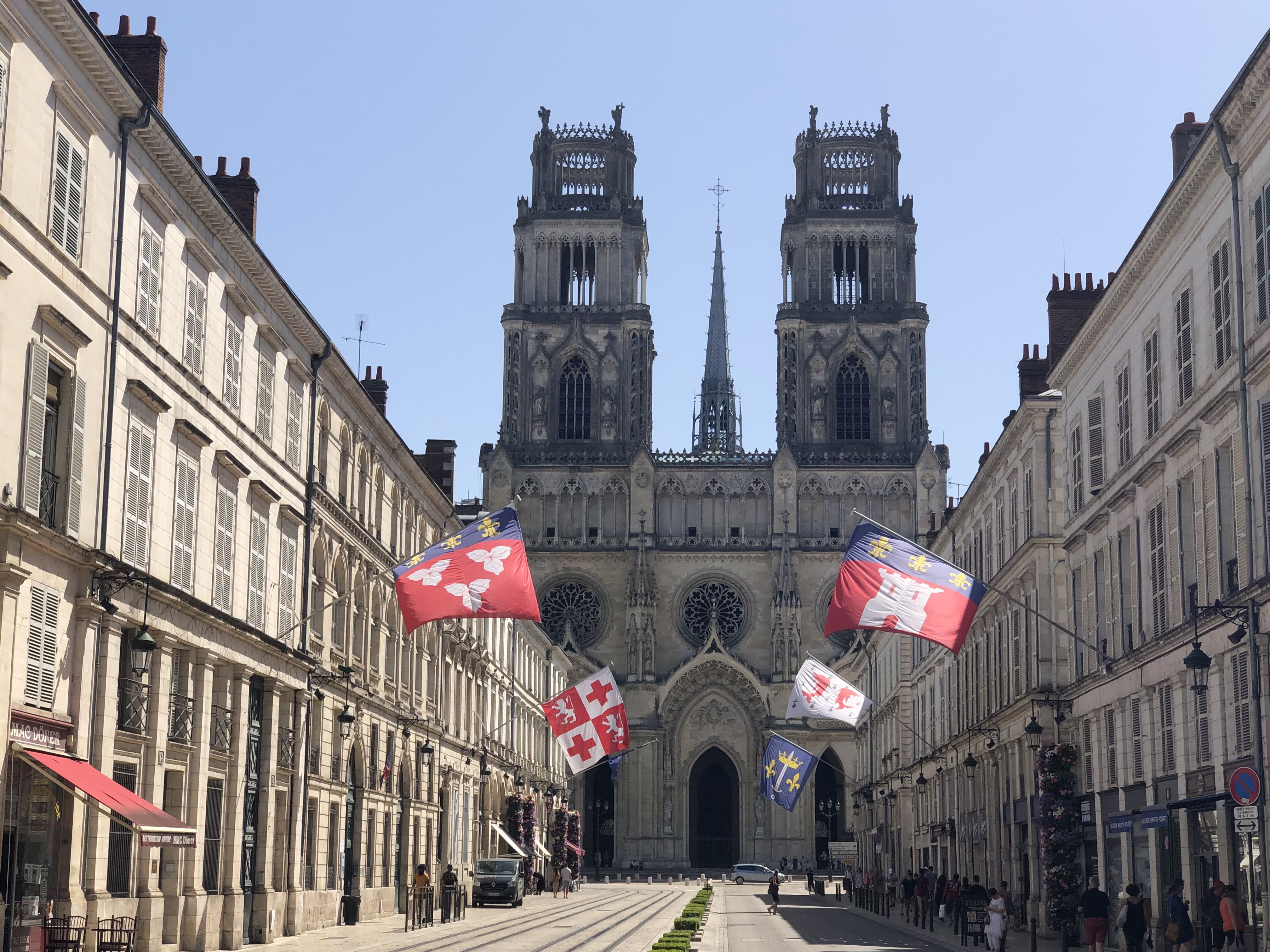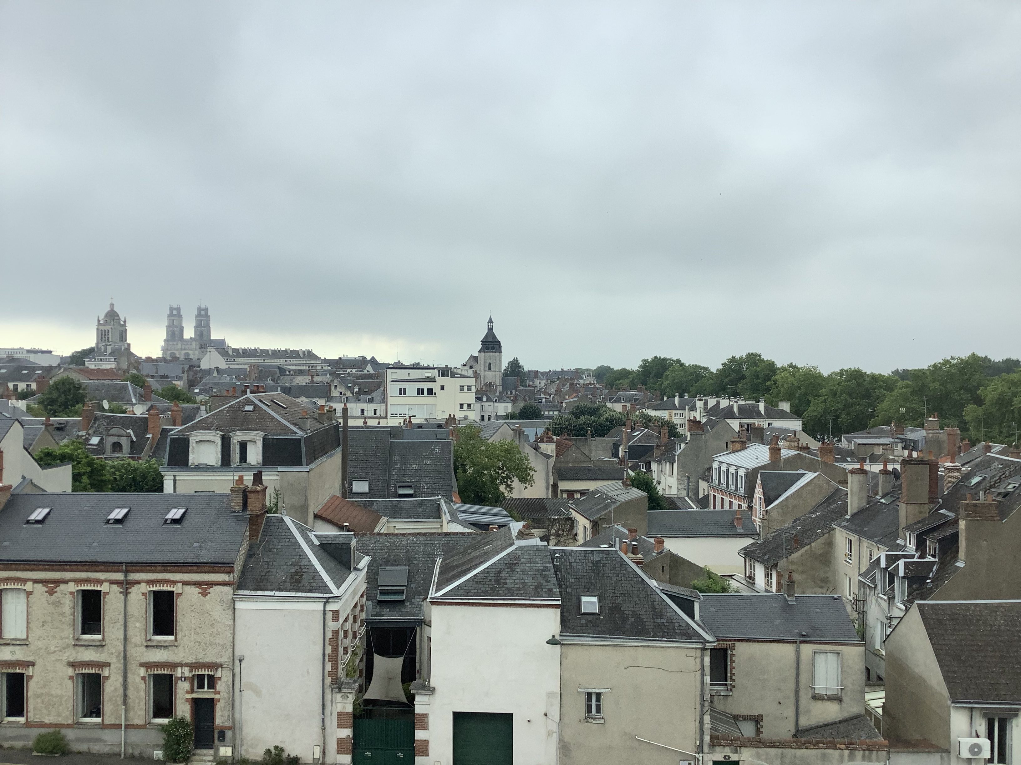 This worked brilliantly – by the afternoon of the following day the Captain had pretty much recovered his equilibrium. This left us with a whole day at leisure in Orléans, a place where, if we’d followed our original schedule, we’d have had very little time to explore. We already had an excellent view of the cathedral from our river-side hotel.