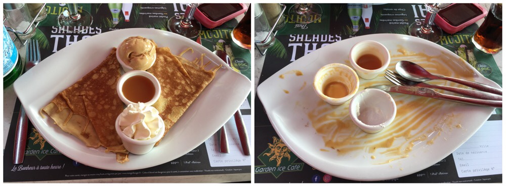 Our lunch destination, oddly enough, was Orléans. It was about halfway through today’s journey, and we’d spotted a candidate lunching place whilst staying there. So, with the familiar towers and spire of the cathedral to our right we crossed back to the northern bank of the river, stopping near the cinema complex at a very pleasant river-side restaurant, where the Captain demolished a huge salad (there has most certainly been salad inflation on this side of the channel in recent years!) while the Stoker enjoyed a crêpe filled with caramel au beurre salé, just for a change!