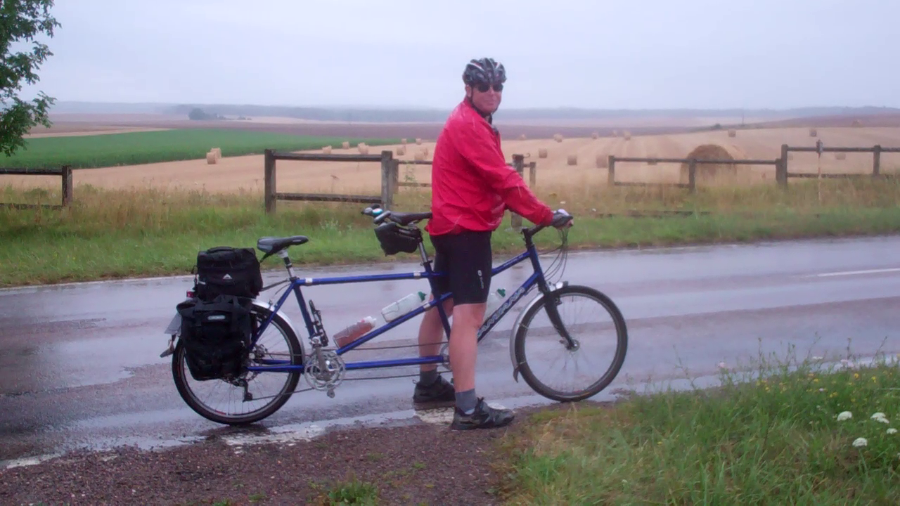 Bar-sur-Aube is still within the Champagne-growing region – we passed plenty of wine producers and pressing plants but few vines. The road south from Bar-sur-Aube follows the river south in a deep wooded valley, there was little traffic and we achieved a good average speed of over 20kph for the first hour. Every 10 miles or so we stop for a drink and to get out of the saddle – tandems don’t provide many opportunities for standing up while riding (“honking” in cycling parlance), so it’s important to have frequent breaks.