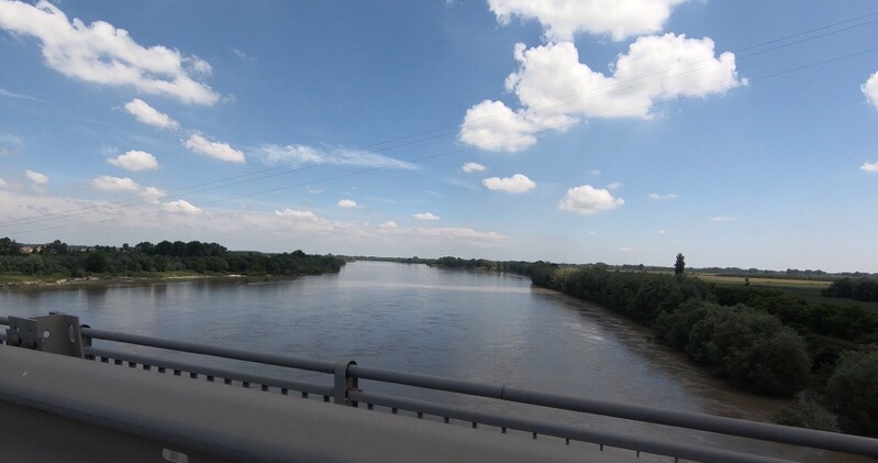 We hit an unavoidable SS road, which are always busy, but this was extremely so, a lot of traffic, quite a few lorries, all patient with us but not very pleasant. Eventually, we discovered why, when the bridge crossing a huge river appeared. The Po! At last! It was enormous, really wide, and so the concentration of traffic suddenly made sense – there are only two places where traffic can cross the river in this area, and this was one of them.