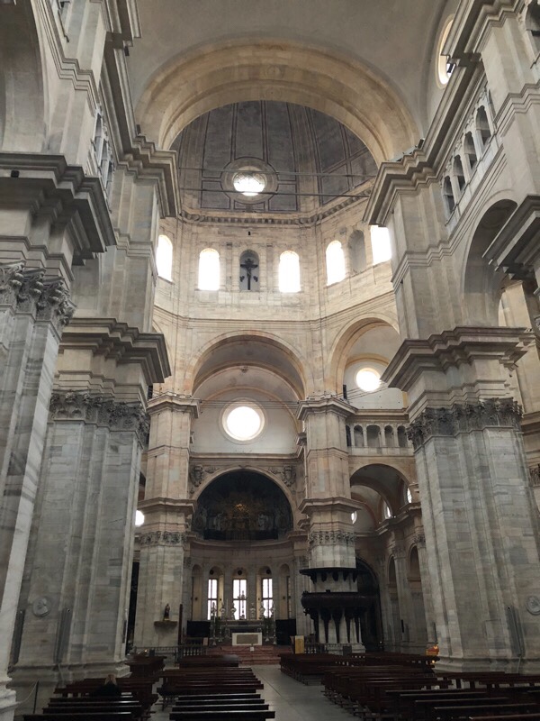 Pavia is gorgeous, bigger than perhaps expected, but full of little streets in the pedestrianised centre. The duomo is the opposite of the sanctuary at Vicoforte, in that it’s definitely bigger on the inside. Outside, it’s a striking brick construction. Inside it’s beautifully plain, letting the marble and the architecture speak for itself. The dome itself is gigantic.