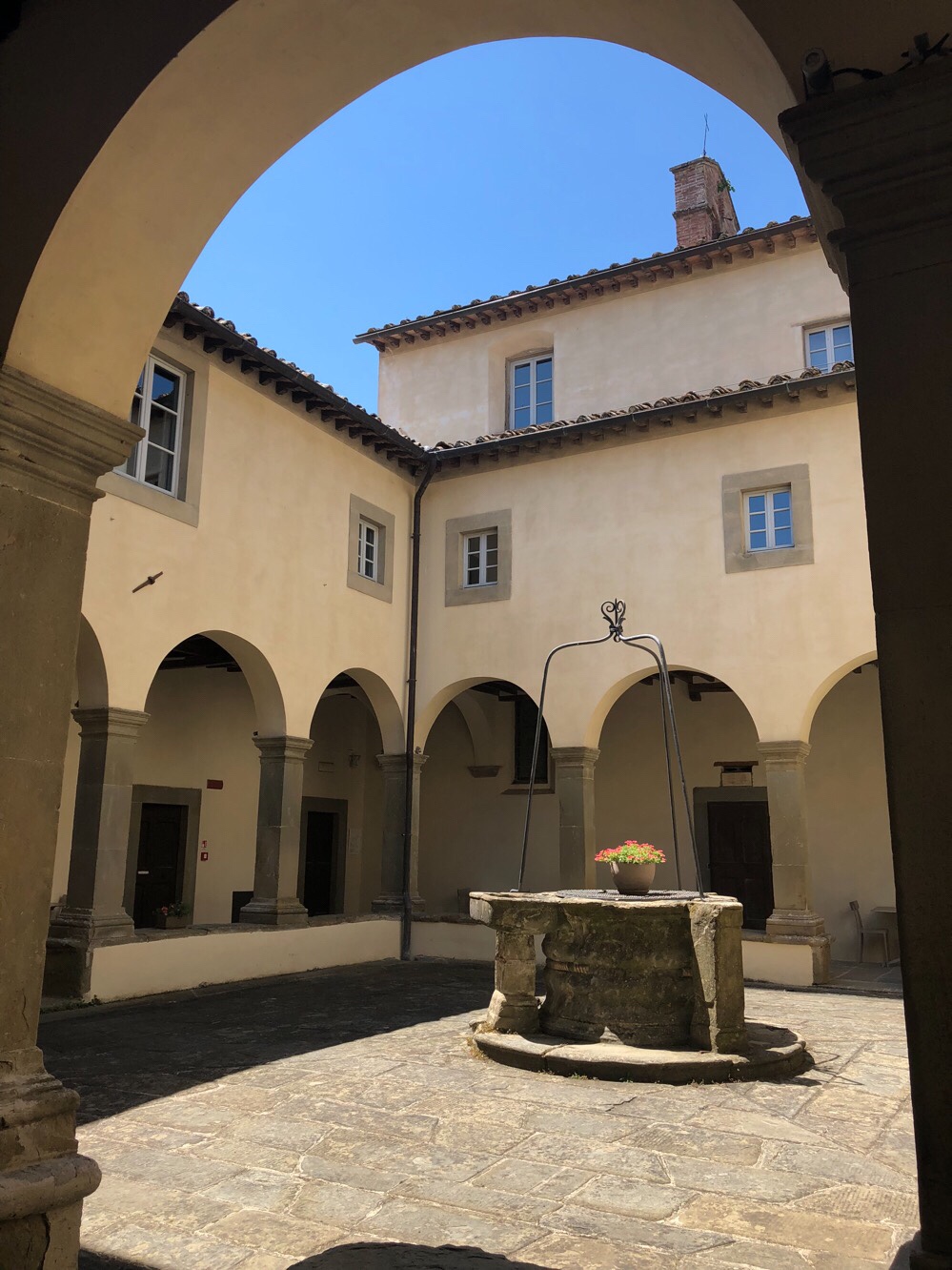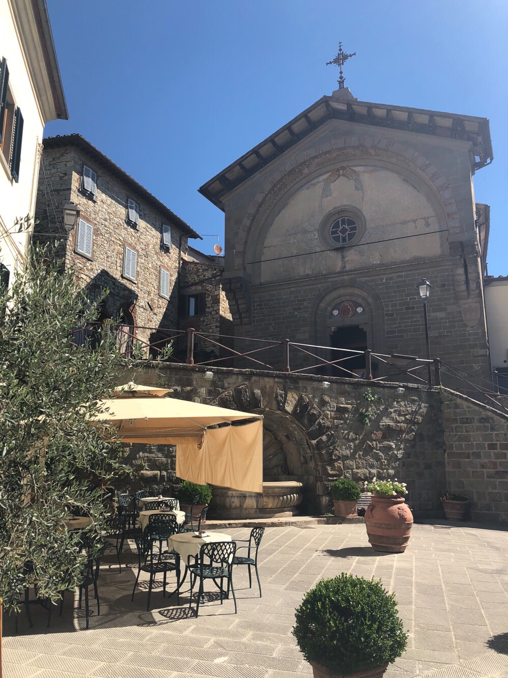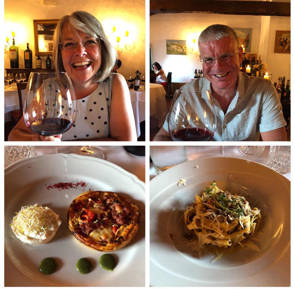 Radda in Chanti, such a beautiful place, absolutely tiny, but a real gem. We’d not have chosen it had it not been for Peter and Sally’s recommendation, it just wasn’t on our radar, but it was a wonderful place to spend the rest day. The hotel was lovely, our room had a great view to the north over vineyards and olive groves, and we had a splendid meal in the hotel’s restaurant, a wisteria-bounded terrace overlooking the vines and forests to the south.