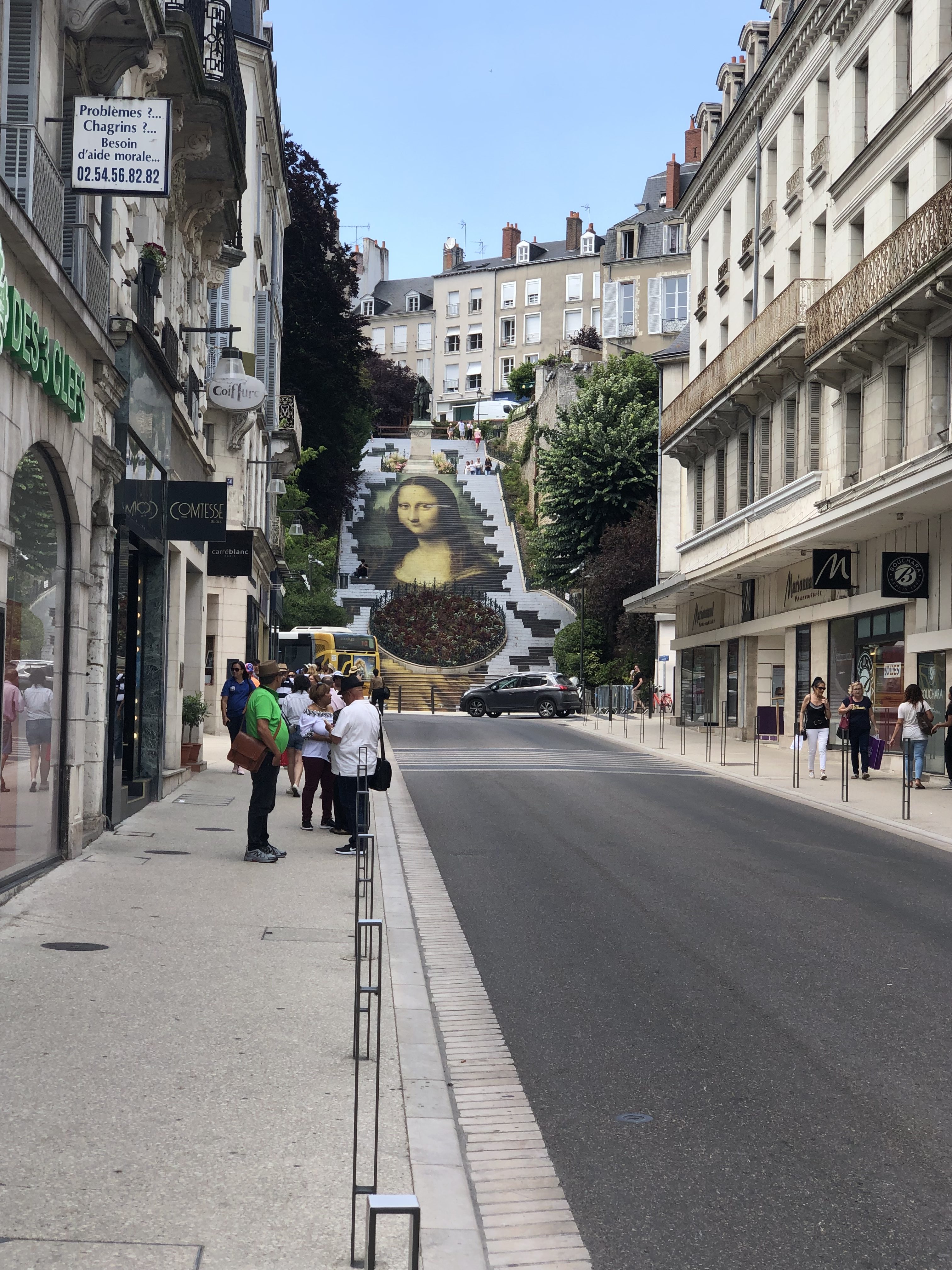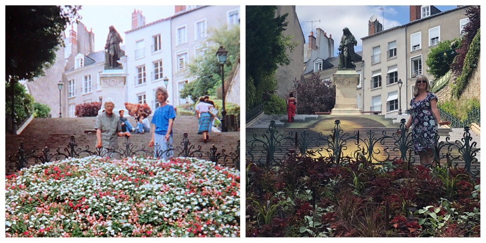 Thereafter we headed up the Denis Papin steps, decorated for a certain Leonardo da Vinci (of whom more later), pausing to re-create a photo of Clare’s Mum, Lesley, and late Grandma, Eva, who visited the Loire with Lesley’s late sister, Gill, some twenty-six years ago.