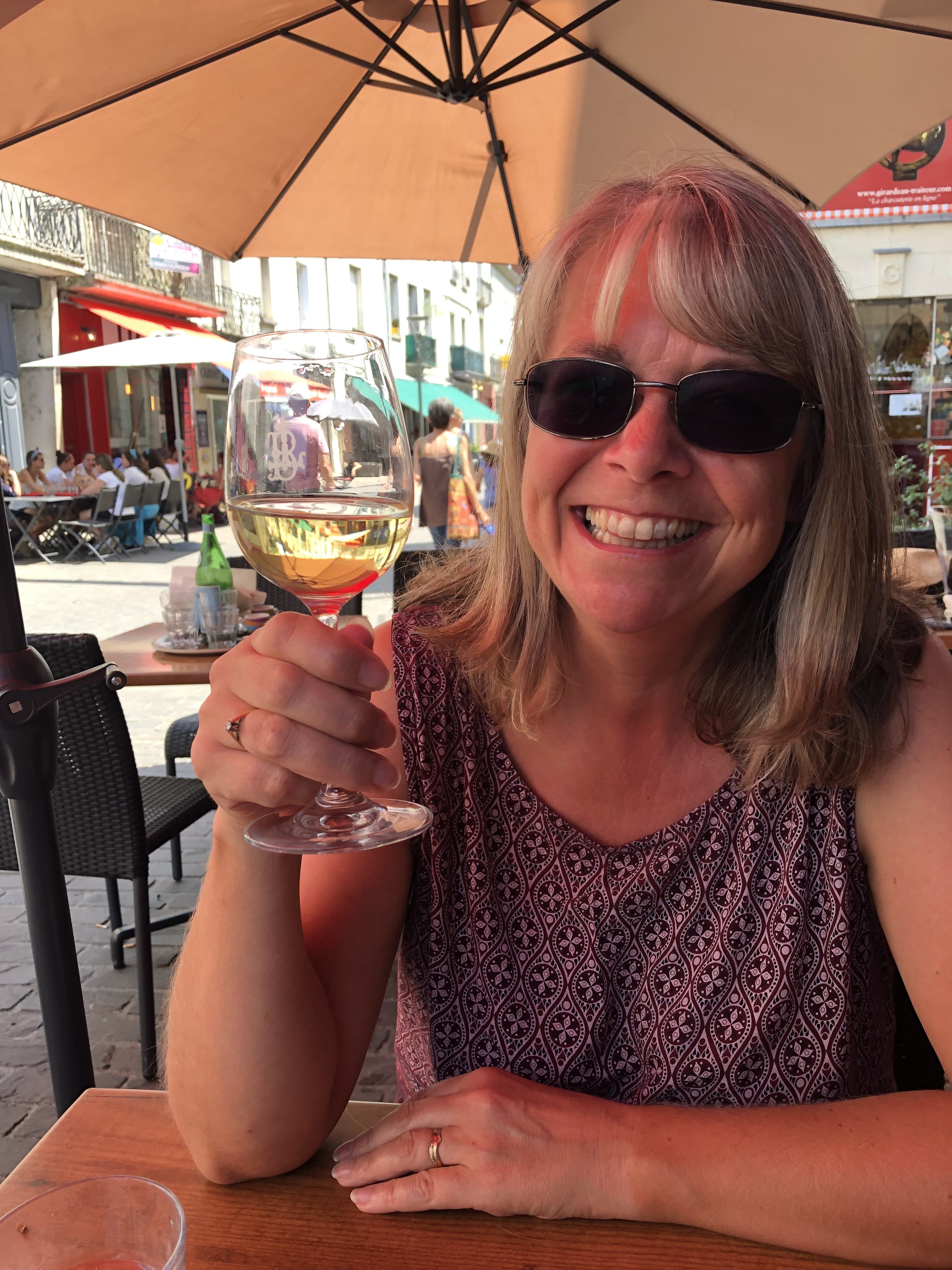 After looking around and enjoying the views from the château’s lofty position, we retraced our steps and found a place to have lunch, and to try the Saumur white wine, which we enjoyed very much.