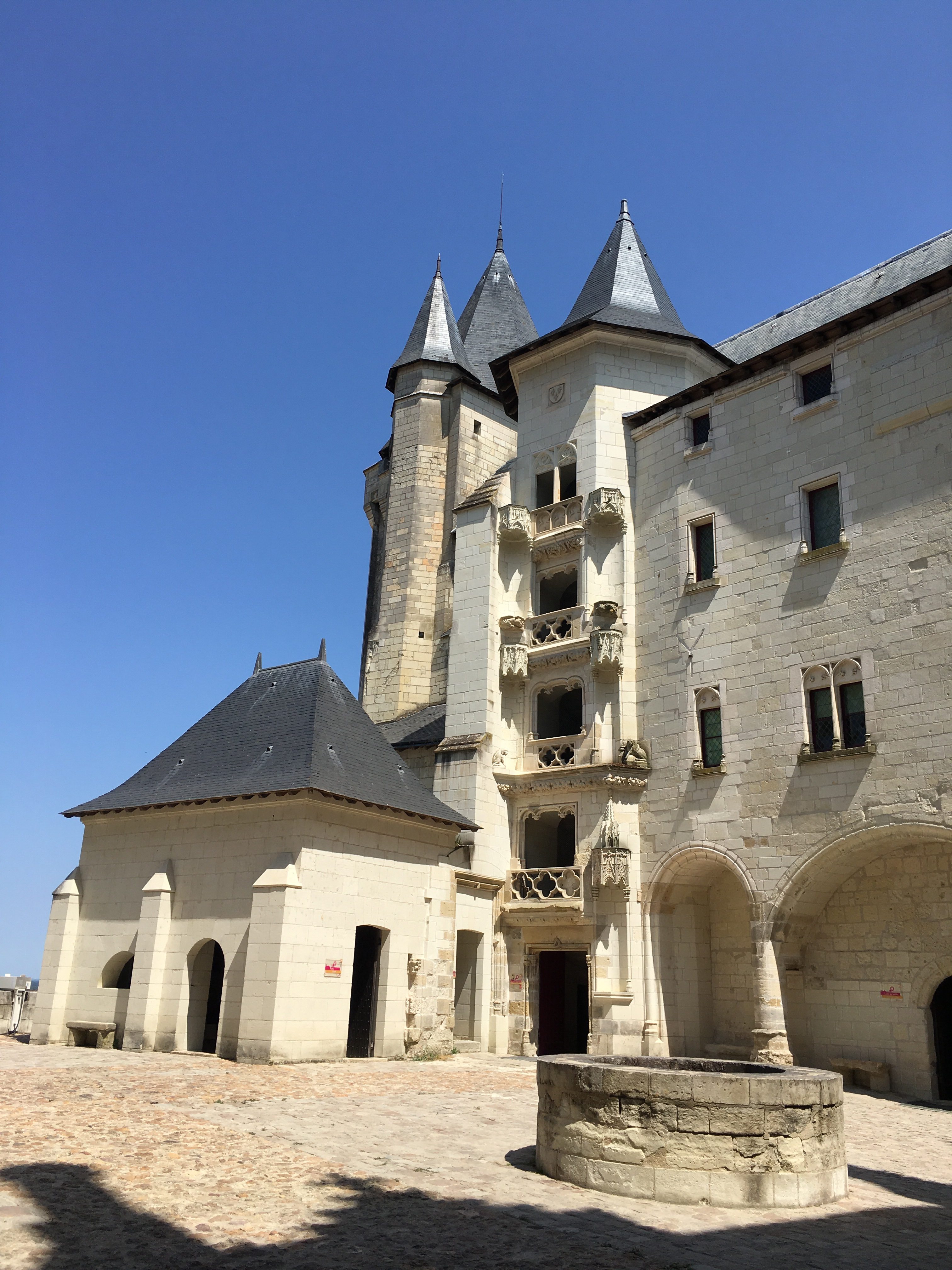 We headed up to the château in the heat and had a look round. I remembered that when we came to Saumur in the summer two years ago I had been struck by how similar the château is to Warwick Castle back home. Then I remembered that Saumur is in fact the twin town of Warwick. What a good match.