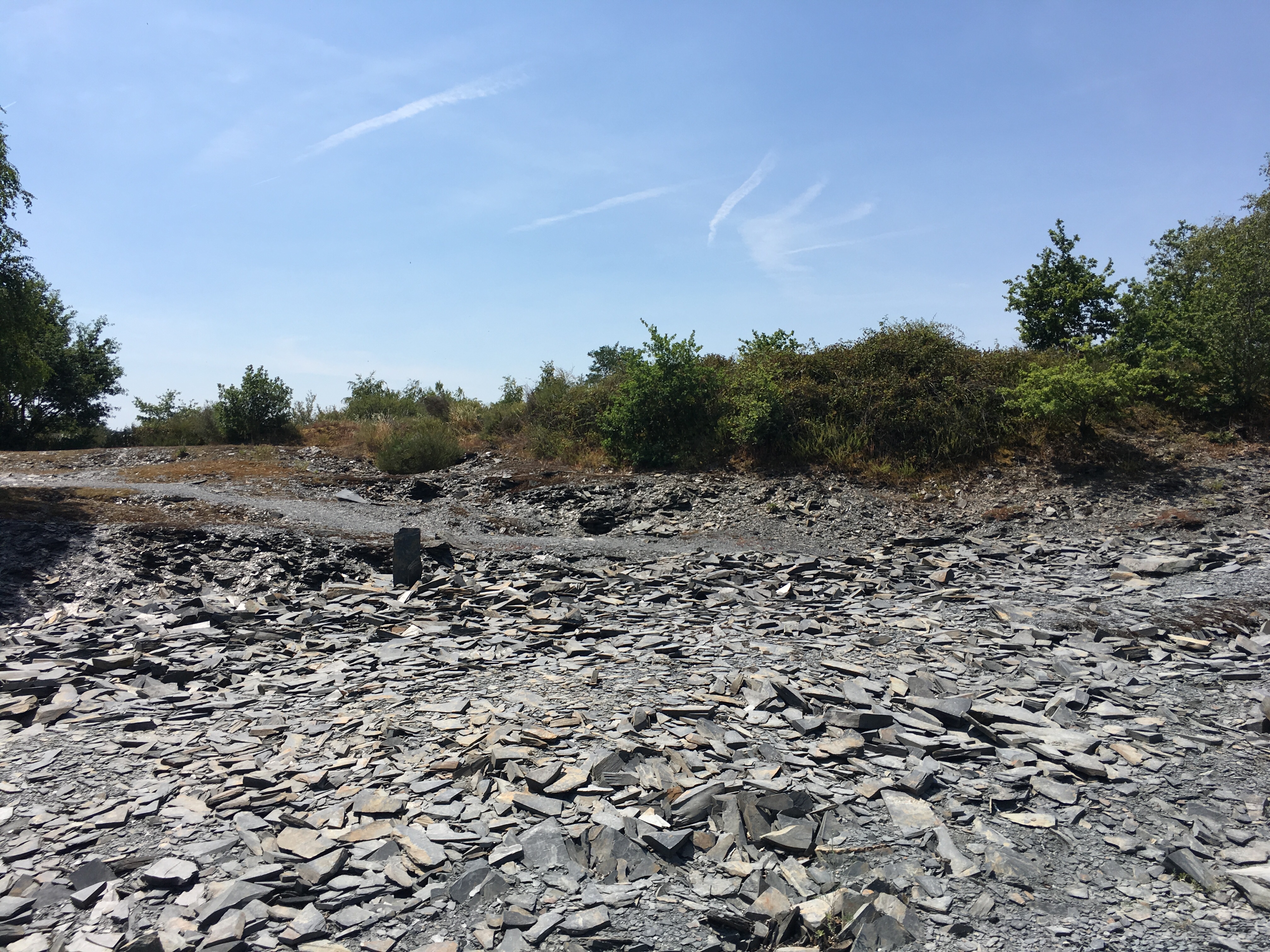 Not far to go now, and we’d resolved to defer lunch til we arrived in Angers, our destination for the night. We entered a small park which said it was on the site of the former Angers slate mining area, and sure enough there were piles of slate everywhere. It was a sudden and unexpected switch in the geology.