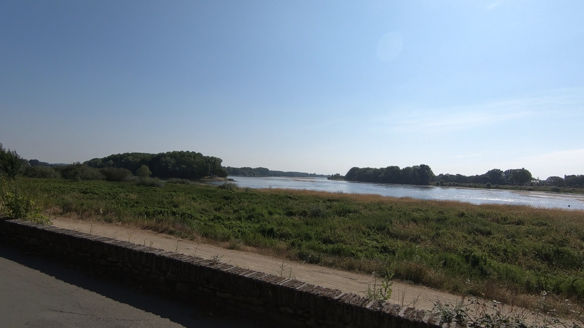 Near Chalonnes-sur-Loire we crossed onto an island mid-stream, enjoying a quiet ride along small tracks until we crossed fully onto the southern bank near Montjean-sur-Loire. Not too far now to our planned lunch spot, but we had some cereal bars to make sure that we wouldn’t run out of fuel on the way. As it turned out it was one of the fastest sections of the day, spent mostly on well-surfaced roads alongside the river. This helped us to nudge our average up towards respectability. The steep climb into Saint-Florent-le-Vieil had the opposite effect, but we made it.