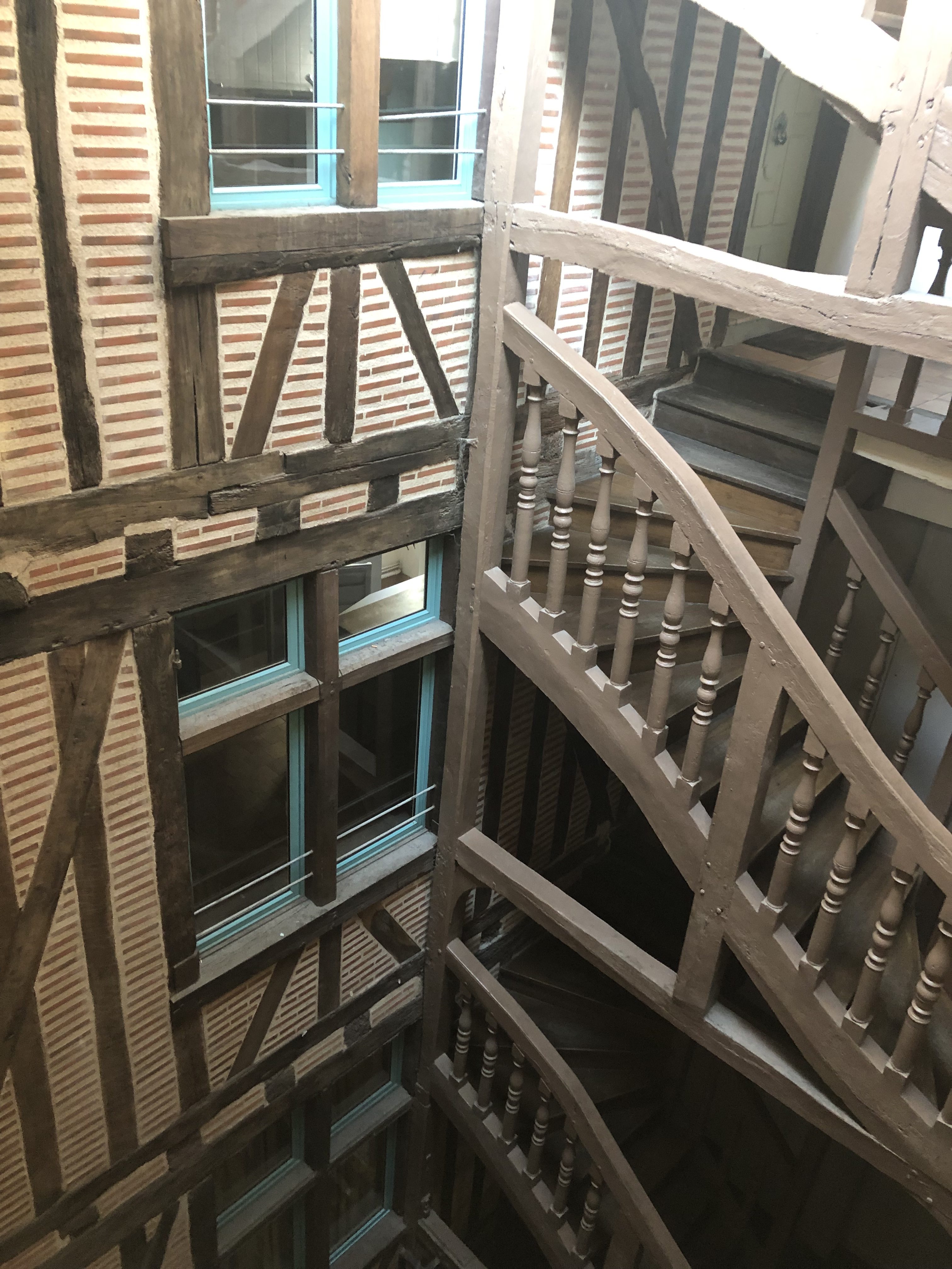 Our lodgings were stunning – a beautiful, ancient timber building, carefully restored by its new owners Marlène and Johanna. Our room was four stories up, which involved climbing an amazing internal staircase.