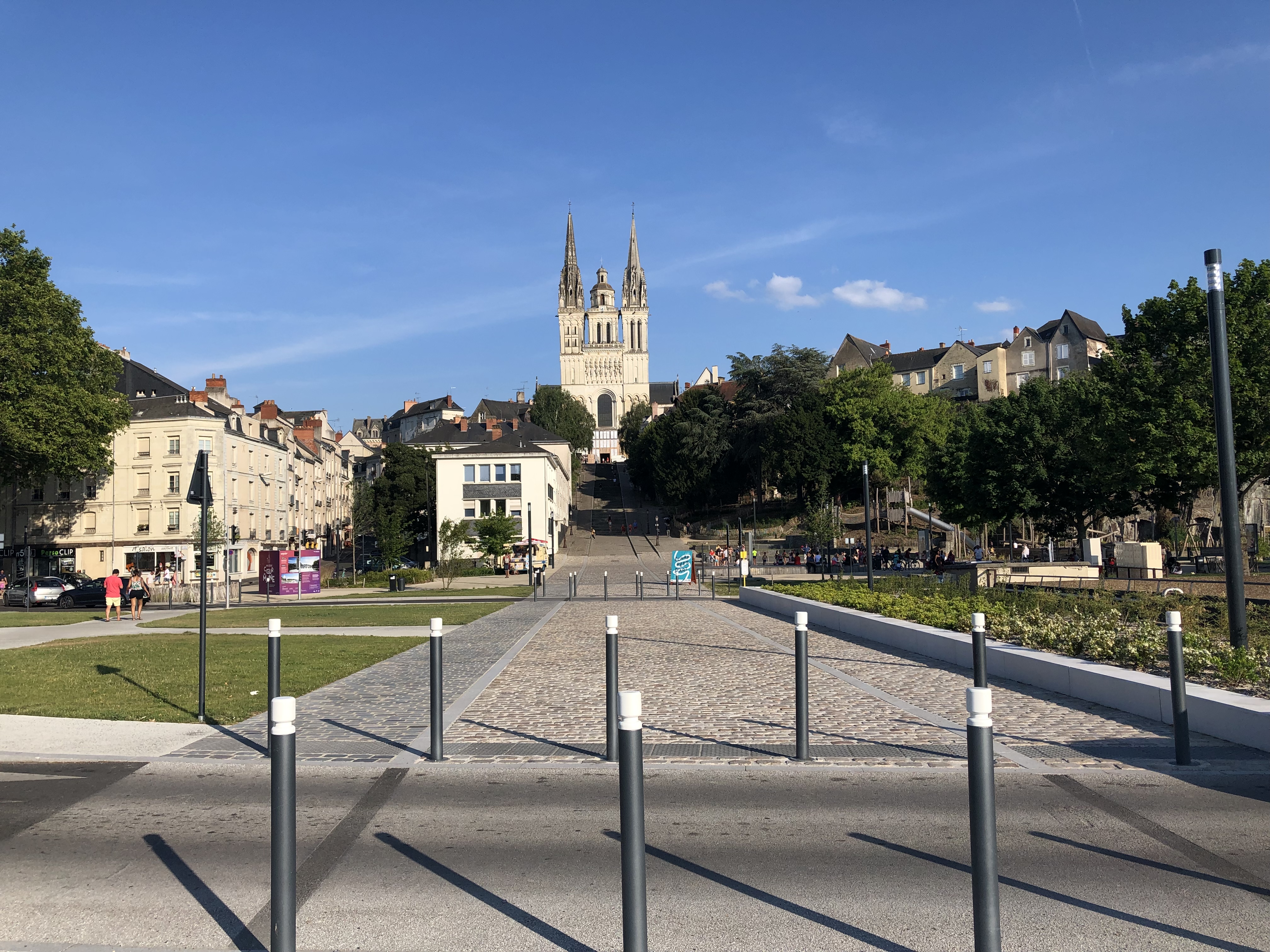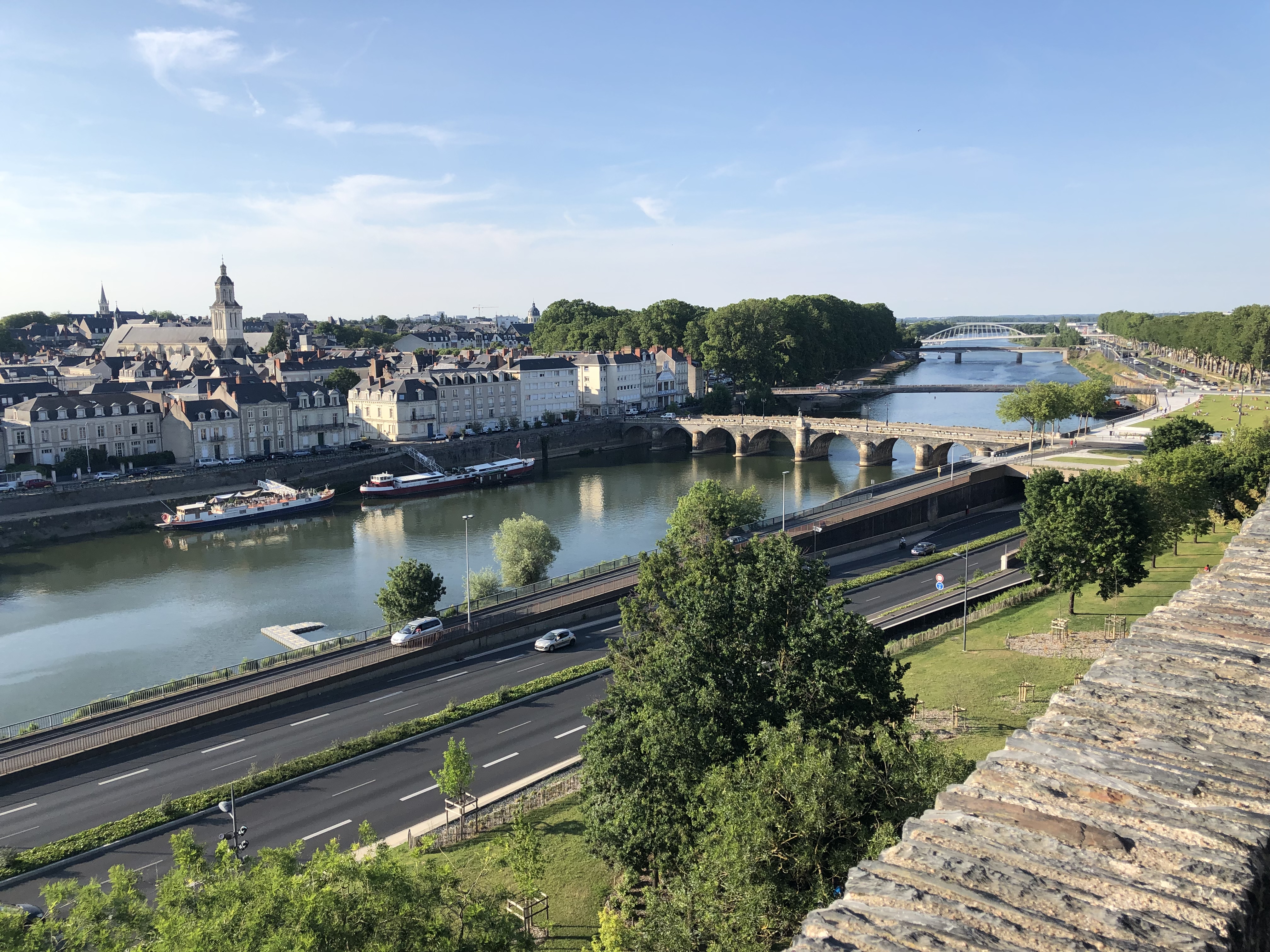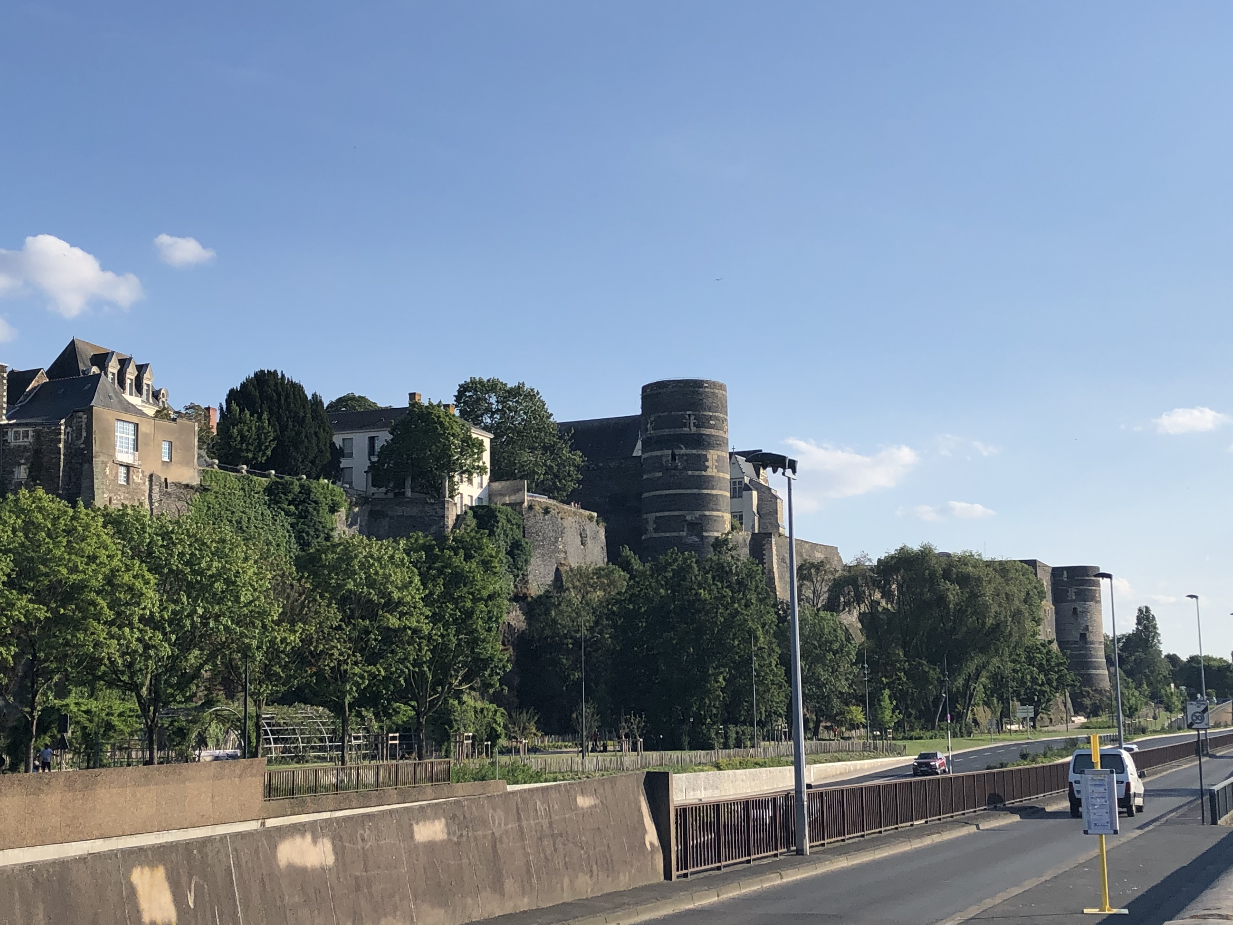 Partly as a result of the local geology it has a different character to the Loire towns we’ve seen, and as it isn’t on the Loire that’s probably entirely appropriate. It sits on the River Maine, another Loire tributary, and a big one this time. The Cathédrale Saint-Maurice d’Angers was directly opposite our lodgings, and sits high above the river.